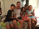 Back to Tod and Kate’s for dinner. The pre-dinner entertainment is David, who doesn’t realize the air rifle that Tod and his son Fletcher, who is a crack shot at the paper target 50 feet away, has a kick. David gives himself a cut and black eye when the scope smacks back. Stupid brain!