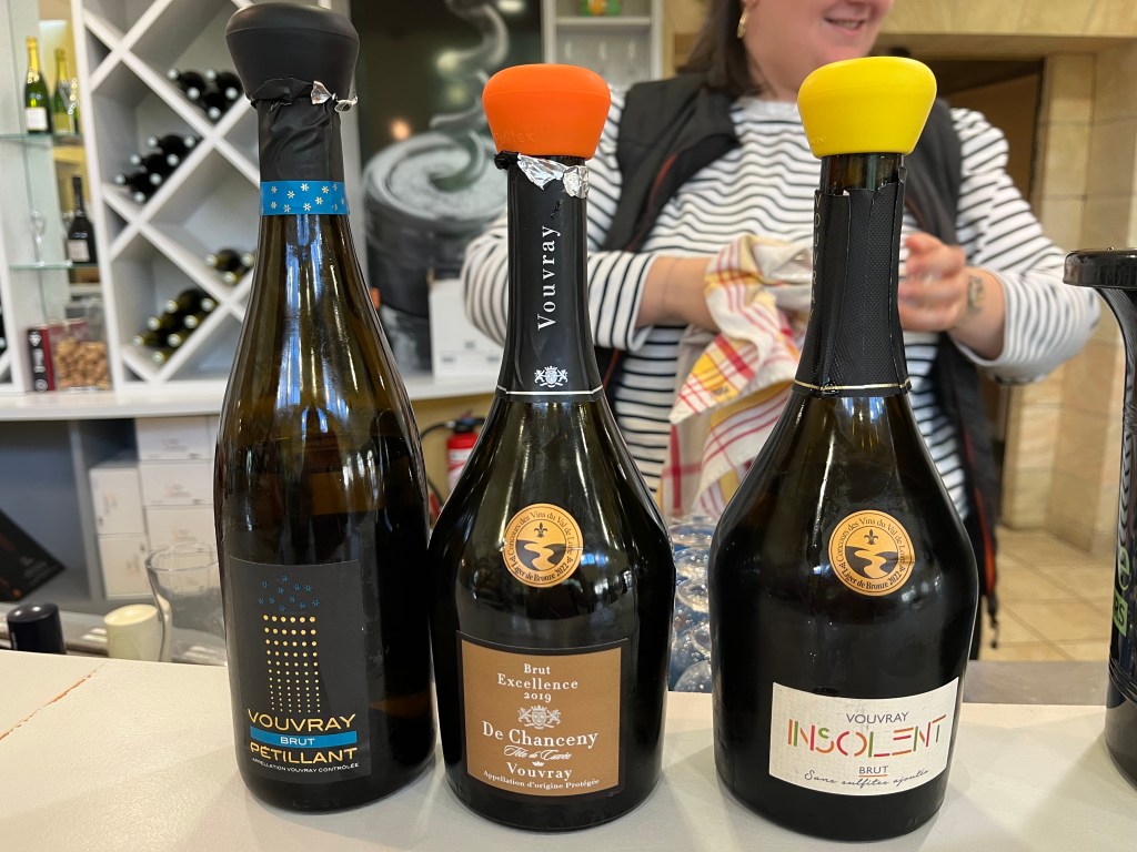 We went home with our food, had lunch and did 2 loads of laundry. Line dried extremely quickly. Once the chores were done we drove to a Cave in Vouvray where we tasted 7 different Vouvray wines. Three sparkling, 3 still dry and 1 medium dry still. We bought half a case to drink here and to take to Aix and share with our guys and Bernadette. We had one bottle for dinner. Yum.