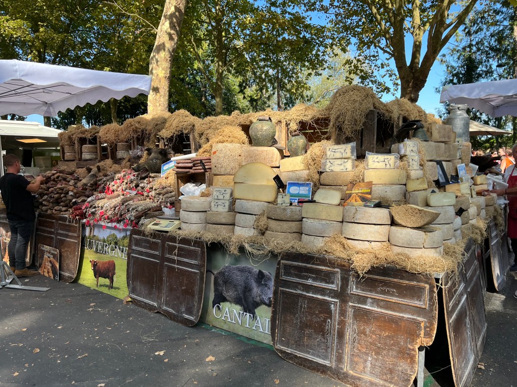 This morning we headed out for the large weekly market in Amboise. We spent $100 on nut filled pasta, unpasteurized yoghurt, goat, cheese, fresh greens and fruits, olives, bread, a rotisserie chicken. Breakfast, lunch and dinner for the next 3 days. Lots of fun looking and selecting and trying to remember our numbers. All the groceries were closed at 1 and we couldn’t buy some items.