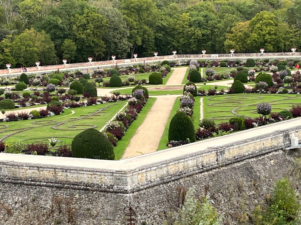 We planned to visit Chateaux Chenonceau on the way out of town. Rick Steves said to arrive by opening at 9:00 so we planned to leave at 9 since it is off season. But, as is our way we left closer to 10. And, sure enough the place was full of tour groups who would fill an entire room. Luckily there is no prescribed route through the house so we were able to jog around and avoid most of the crowds. On the walk from parking to the castle we toured the food and flower gardens.