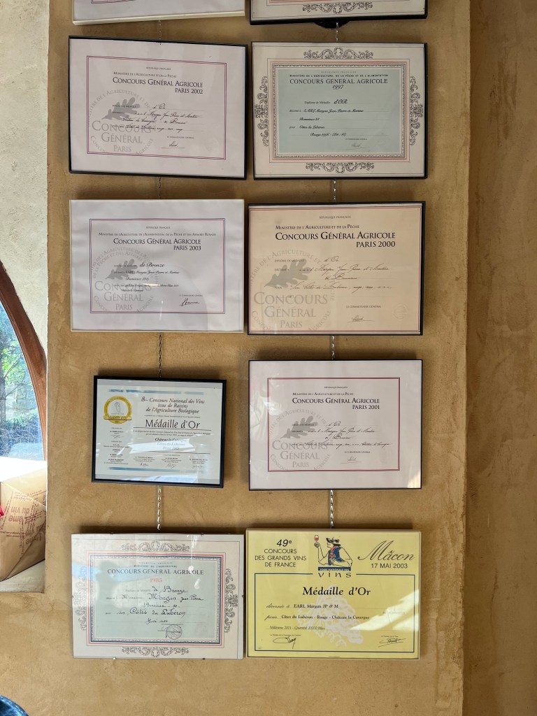 On our way back to Aix-en-Provence we stopped at Chateau La Canorgue to taste and buy some wine. It’s a small and unpretentious place – with award certificates on the walls. The man who was serving us wine showed us a photo of himself with the director Ridley Scott – when they had lunch a couple of weeks ago. He had also dined with Alice Waters when visiting California. Nice wine!