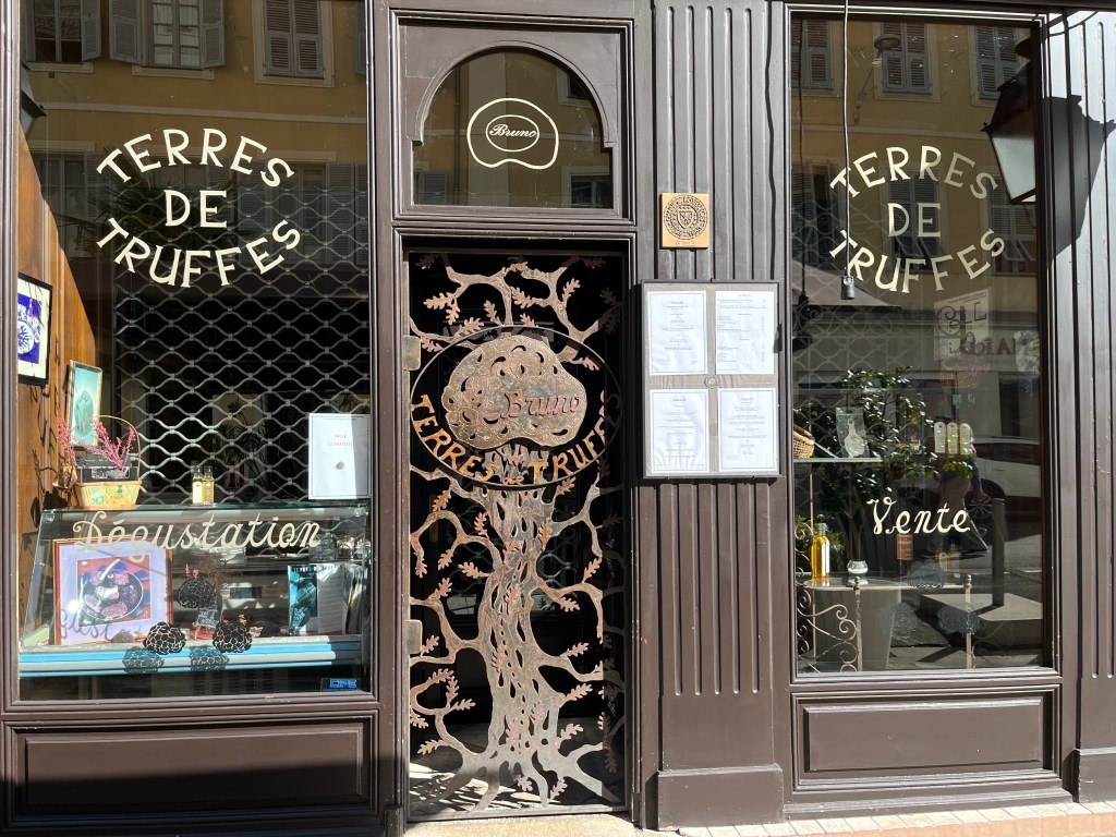 After the promenade we walked into the old city (Vieux Nice) to see the flower market and climb castle hill. The market was a disappointment but there were other interesting sights along the way: a truffle store with a restaurant where all dishes involved truffles, a couple of Baroque churches, fun bars and restaurants.
