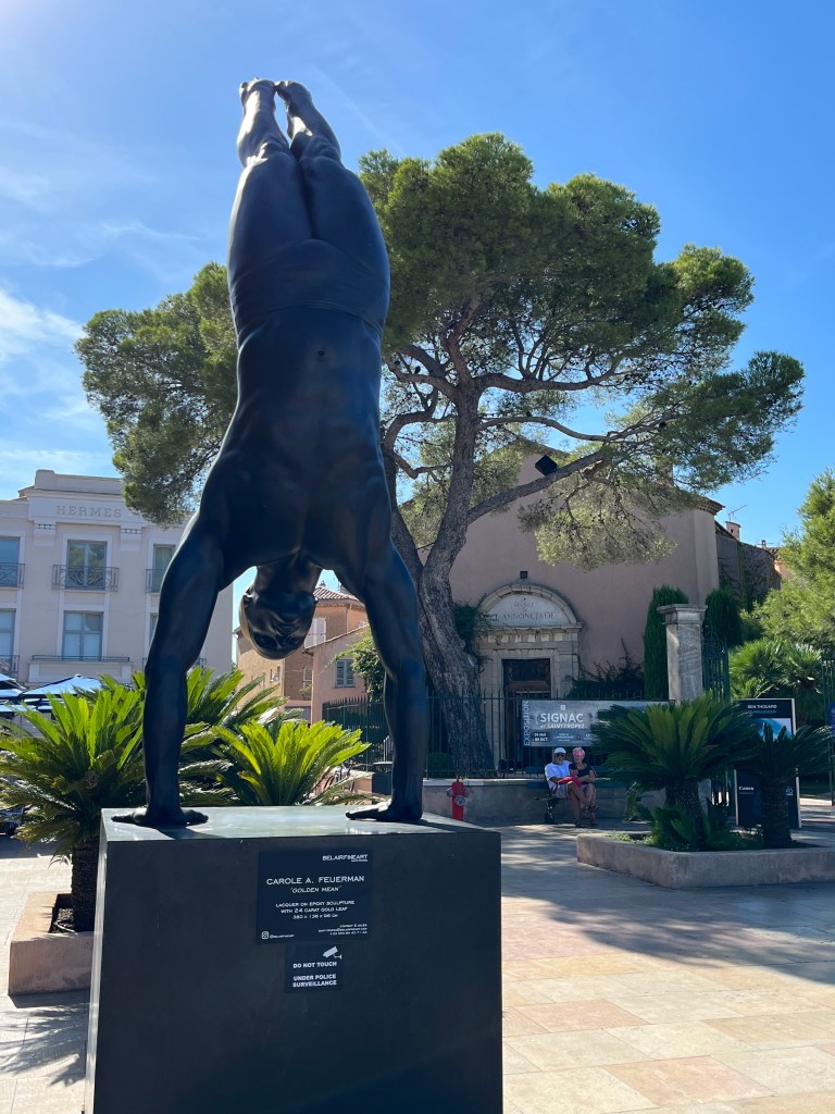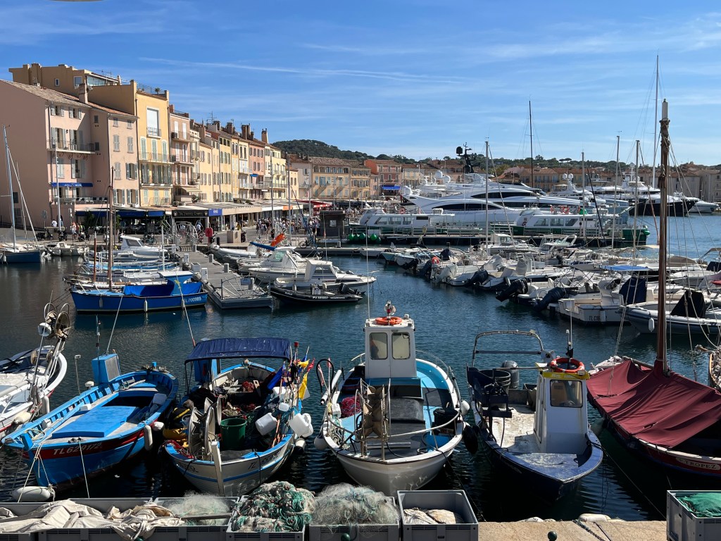 We left Villefranche to return to Aix planning two stops along the way. St. Tropez and then Brignoles – where Bernadette currently works and lives. St. Tropez is a very small town with a lot of money. The harbor is full of huge yachts and the streets have dedicated buildings to high end designers. Valentino, Chanel. I saw a wonderful dress in the Valentino window that was only $3500. I did not try it on. Instead I went to the jetty for some nice photos.