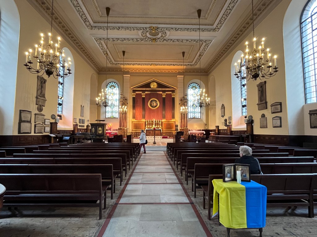 Gusts of wet wind propel us on rain-slick streets toward Covent Garden, where we dip into St. Paul’s Church — not Christopher Wren’s cathedral but Inigo Jones’s dedicated to actors. Plaques on the walls commemorate Peter O’Toole, Vivien Leigh and Diana Rigg, among others. We perambulate the beautiful small garden behind the church and then make our way to … so very British … the Apple Store, where we have to buy a portable charger because we left all of ours 3,662 miles behind us. We also have to find a USB-to-headphone cable so Cynthia. can stay awake all night listening to podcasts and tracking signals from our Miele washing machines. We get it from a street vendor who charges a reasonable premium of 10 pounds for this 50-cent item.