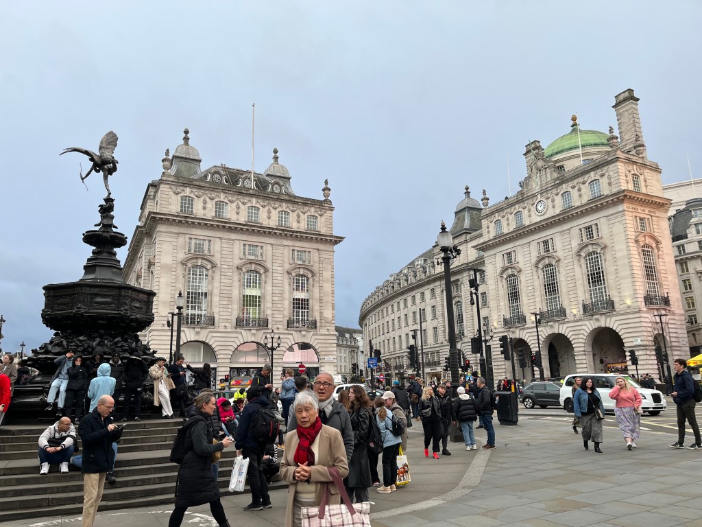Wednesday we dressed in four layers of clothing and stuffed our knapsack with umbrellas and extra layers and “technical” rain gear and ventured to the West End for a self-guided walking tour that began at Leicester Square: ground zero for filming Gene Kelly Dancin’ in the Rain, Mary Poppins under her umbrella and Charlie Chaplin mugging as the little tramp, among other bronzes commemorating famous scenes filmed here.