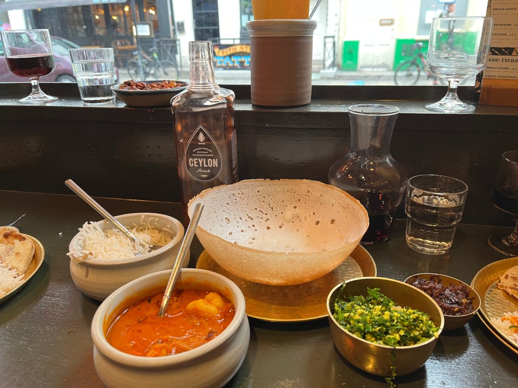 Basically defeated by the elements we duck into Hopper’s Shi-Lankan restaurant where we made reservations yesterday … and despite most tables are empty, we are shown to a bench wedged in front of the front window because “when you make a reservation through Google, you cannot choose your table, we are told, and all other seats have been reserved” obviously by people who know better than to use Google. We mention this quirk because it crops up later in our stay, so it’s clearly, “a thing”.