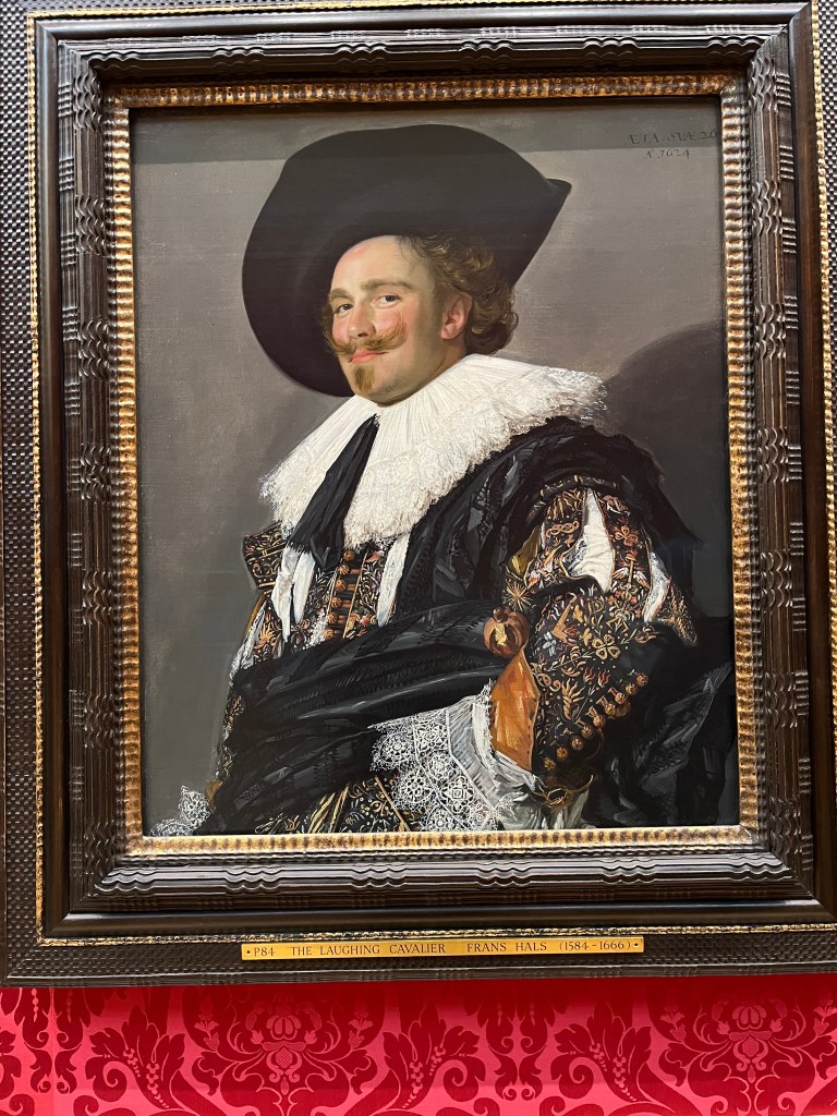 Thursday’s weather was immeasurably improved: We only needed three layers under our technical gear and, after an English breakfast whose ingredients cover two sides of the hotel’s dining room, we swiped our Oyster cards on the 14 bus in front of the V&A across the street and rolled to the Wallace Collection in Marleybone. As the bus sways north on Glouster Street, we see a plaque set beside the door of a rather well-heeled house. The plaque reads “Major General Benedict Arnold American Patriot resided here from 1796 until his death June 14, 1801.” (Makes us wonder if, years and years hence, our ancestors might visit St. Petersburg and read “President Donald Trump, revered American oligarch ….” Ugh, enough, back to Wallace.
