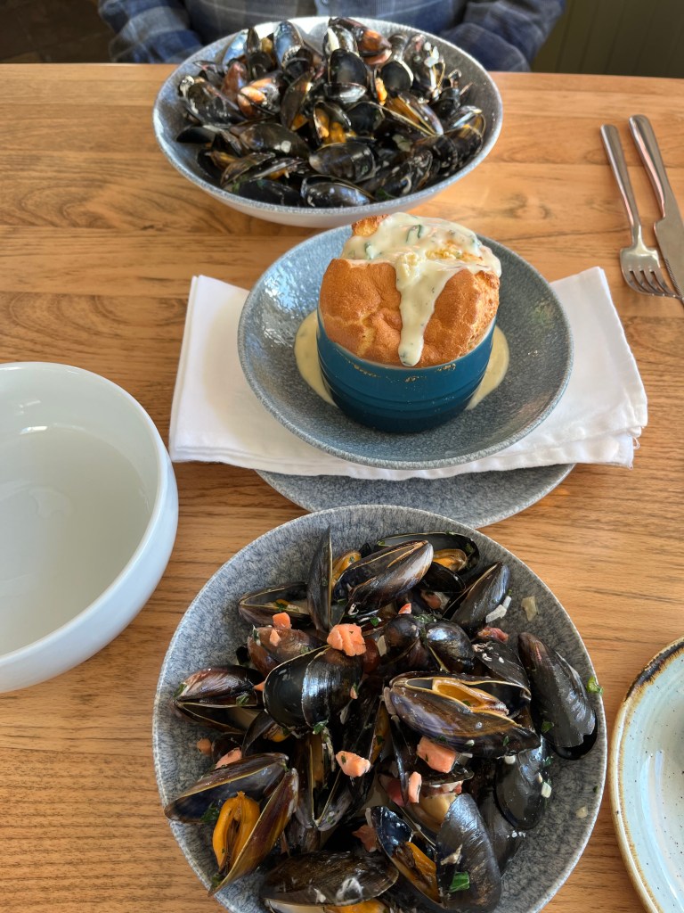 We drive a half hour along a lake to the Pier House Hotel Restaurant in Appin Bay where we cannot sit in the really nice room with the bay window overlooking the lake because we are not staying at the hotel and, since half the tables in that room remain empty during our meal in the OTHER room, we assume a lotta other people are not staying there either.