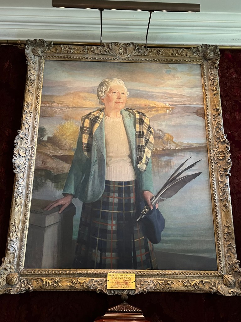 Dunvegan, the 42,000-acre seat of clan MacLeod, is a place where its owner actually stays when he chooses to leave London. Like Eilean Donan, this castle has a tempestuous history from the 14th century and was eventually remodeled and restored by Flora, who became the 28th Chief of the clan and inherited it in 1935 when her father died and the few less-direct male descendants of the clan refused to take on the responsibility. She united the far-flung-across-the-globe clan and died at age 98 in 1978, leaving it to her grandson, John.