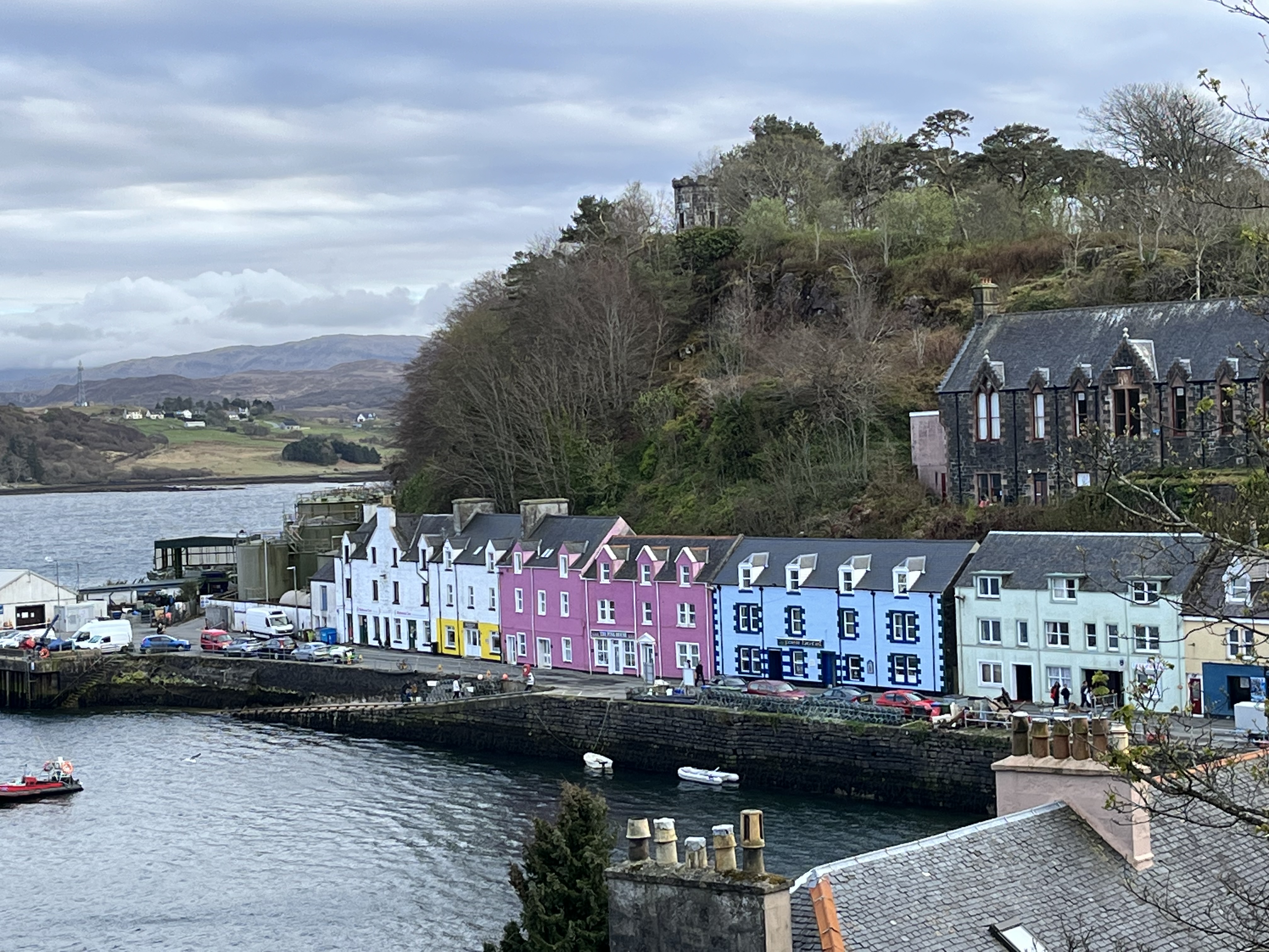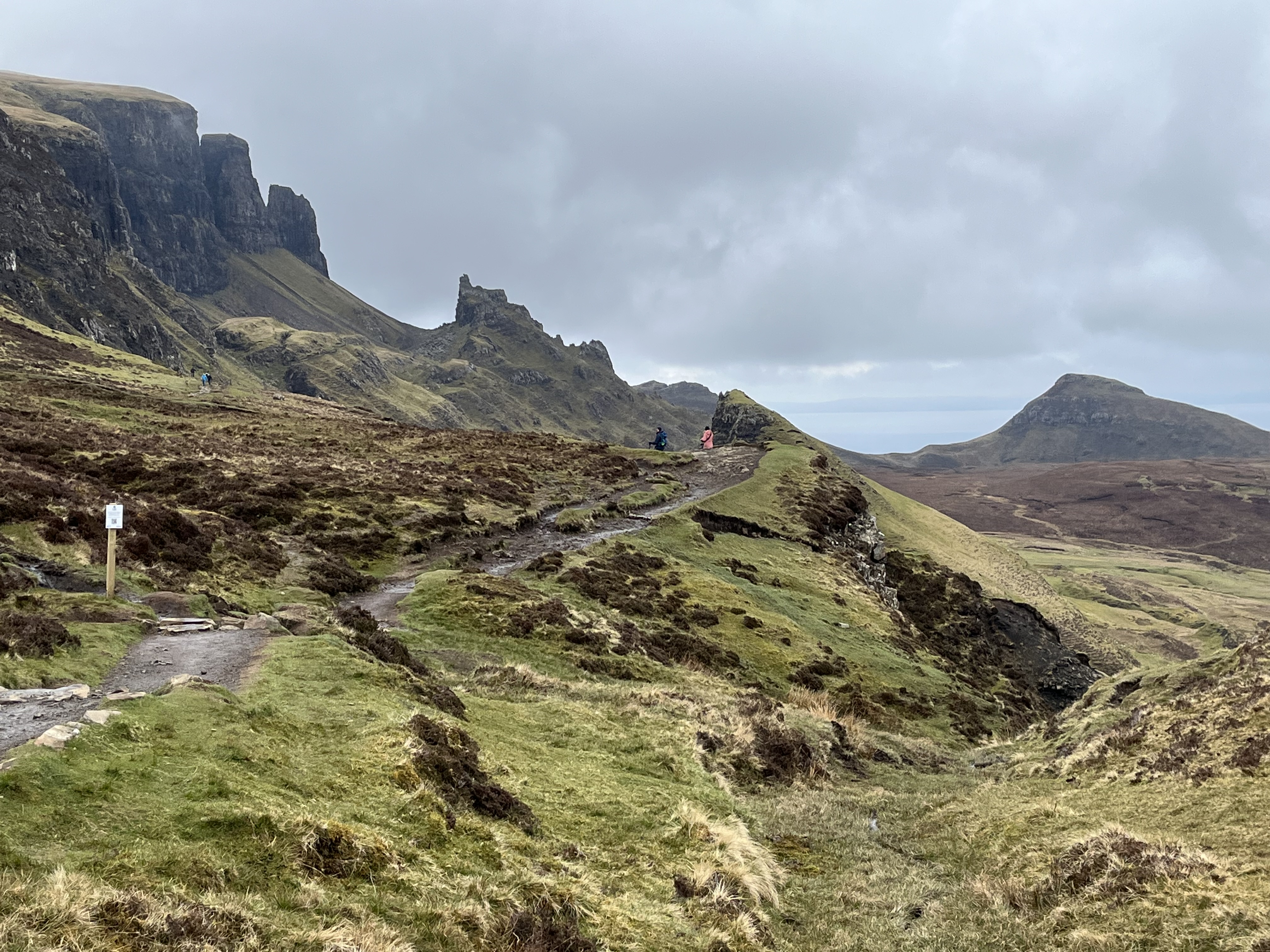 Still an inclement weather day so we will divide and conquer. Cynthia will hike with David at the first natural wonder place – Quiraing – but from near there take a bus to the Skye Museum of Cultural Life, while David takes the car and hikes two other spots, weather be damned. We’ll meet again in Brigadoon or Portree, whichever is real, for drinks and dinner.