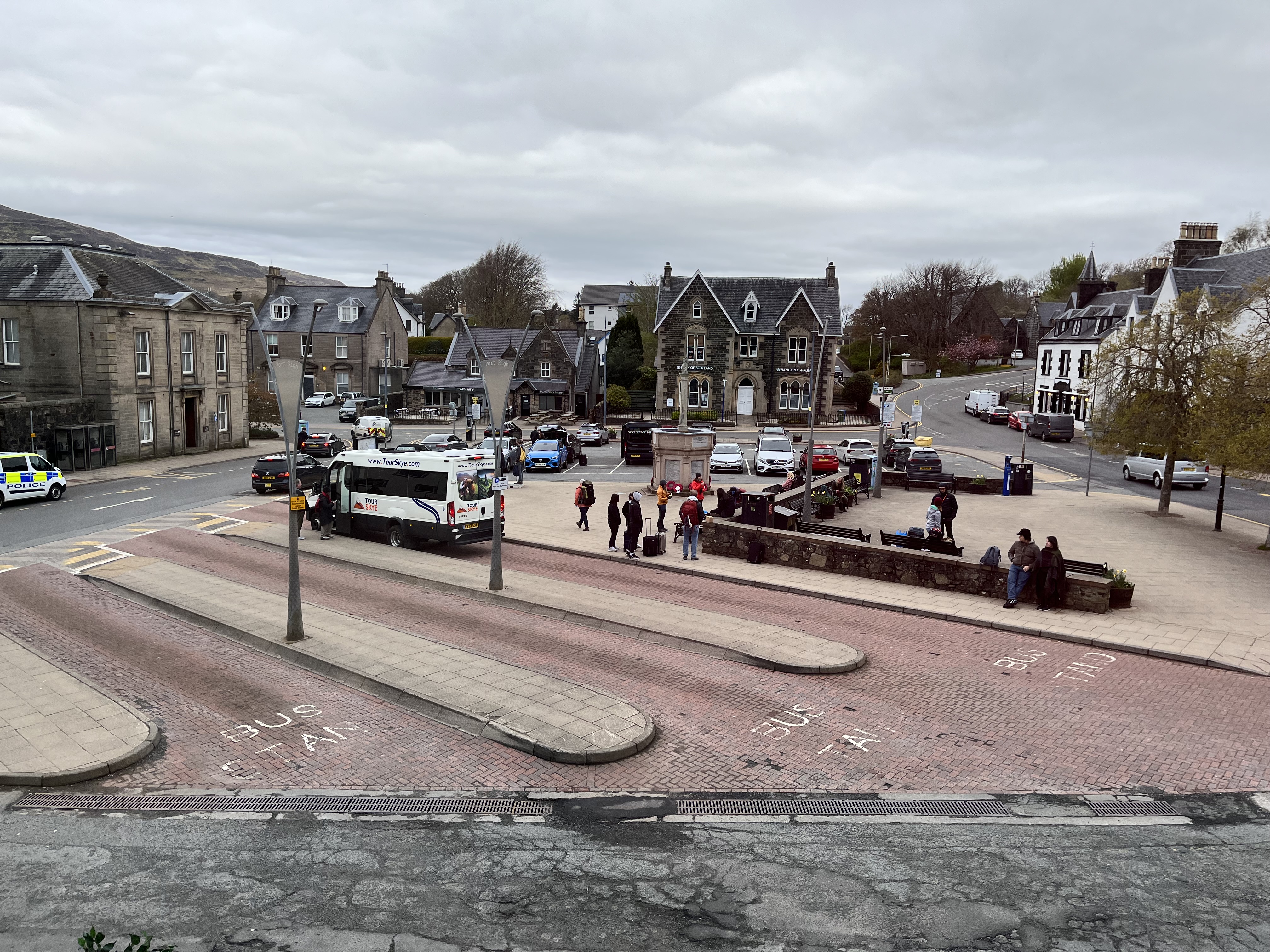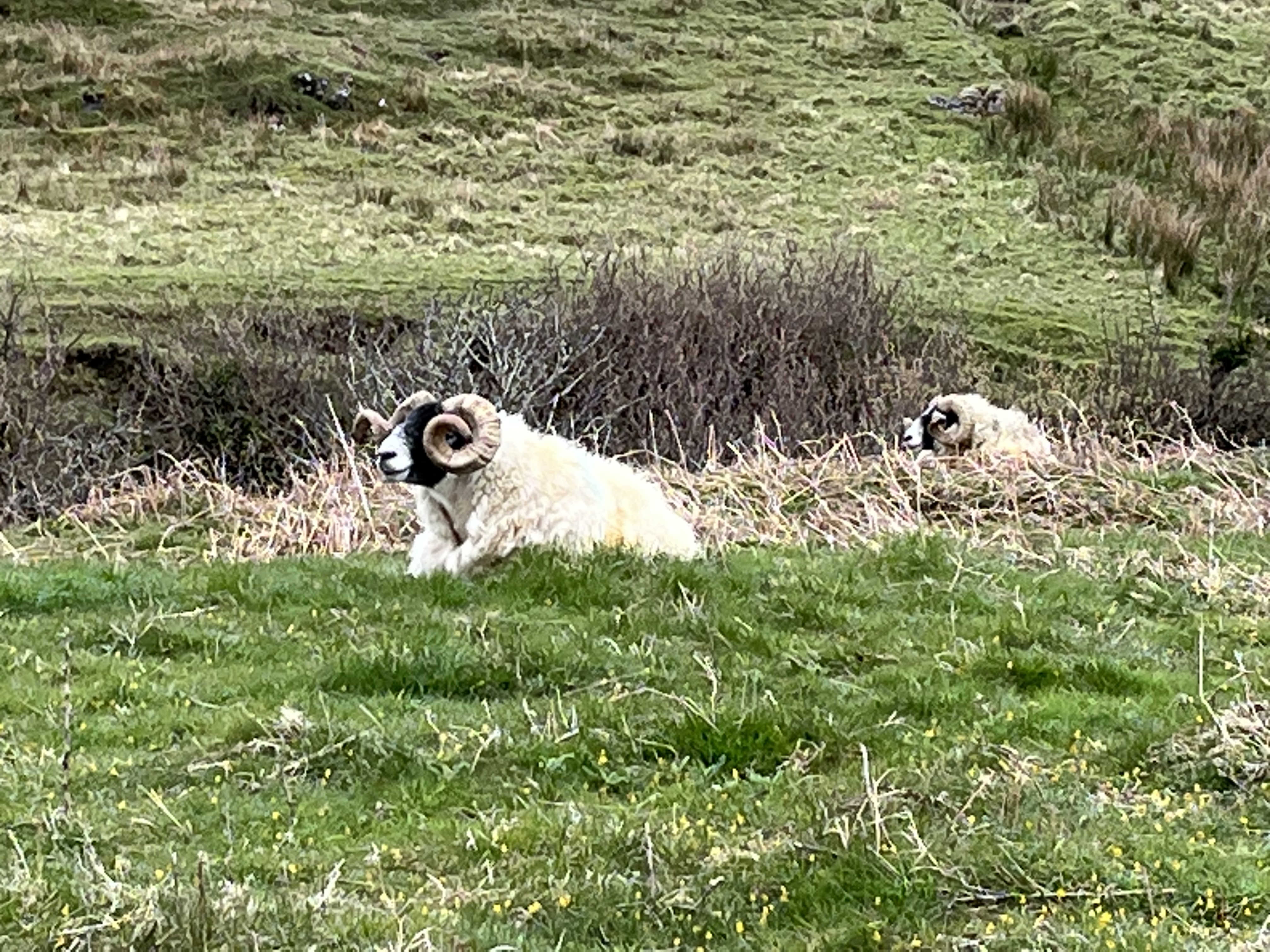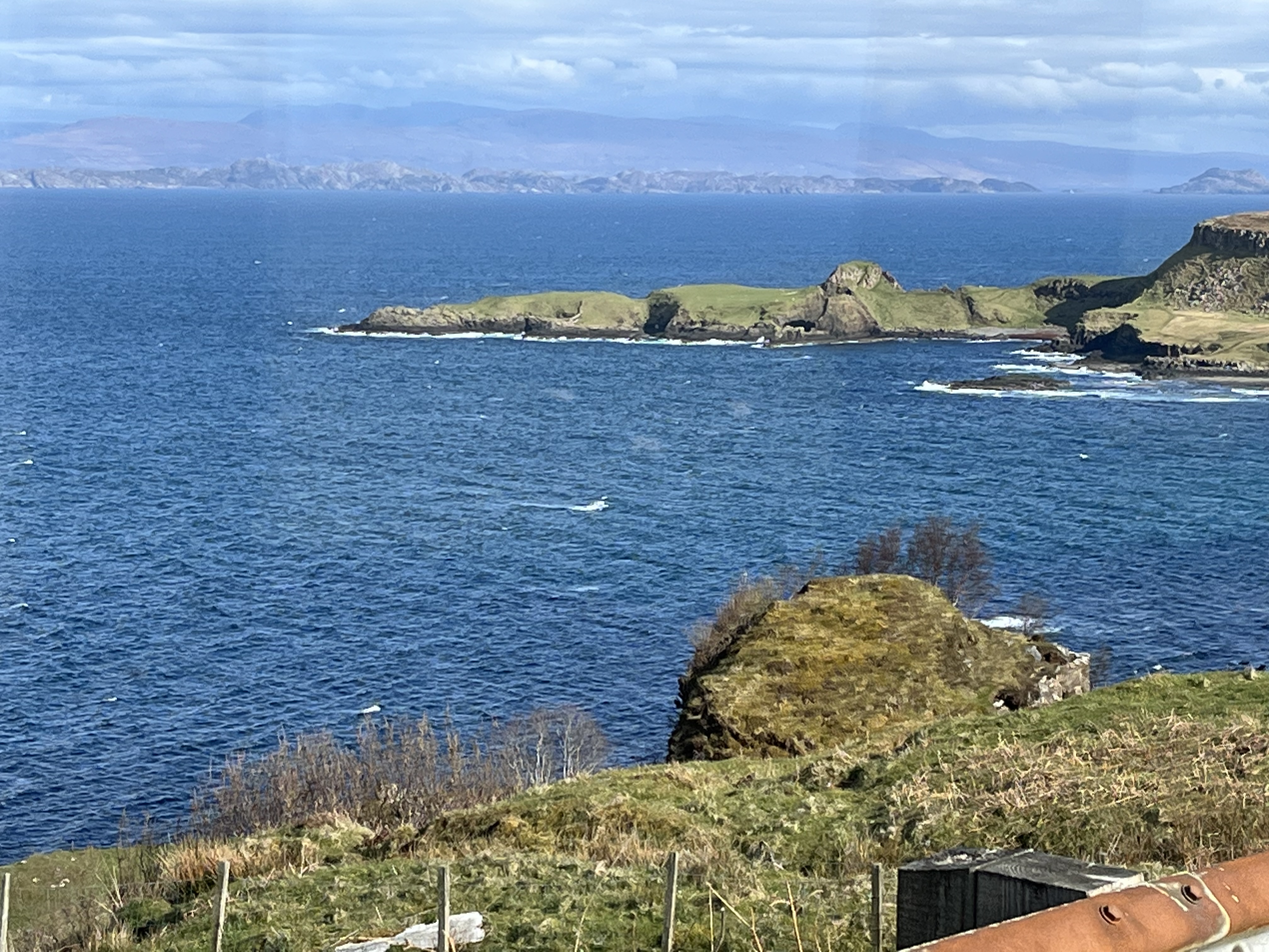 When I board the bus there are five 30-year-old campers. All smile and nod. After a few miles a local man boards with his dog. As we move, people wave to the driver who responds to them by name. After about 15 minutes the campers are left at a campground and the gentleman at a village. The driver calls to me and says that it is just us and I should move to the front. For the rest of the trip I hear about his vacation from his home in the Netherlands to Skye and how he fell in love with a local women and has now lived in Scotland for 7 years with his wife. Whenever he sees a nice view or some cute lambs along the road he stops the bus, points out the site and tells me to get off and take a photo!! A lovely afternoon.