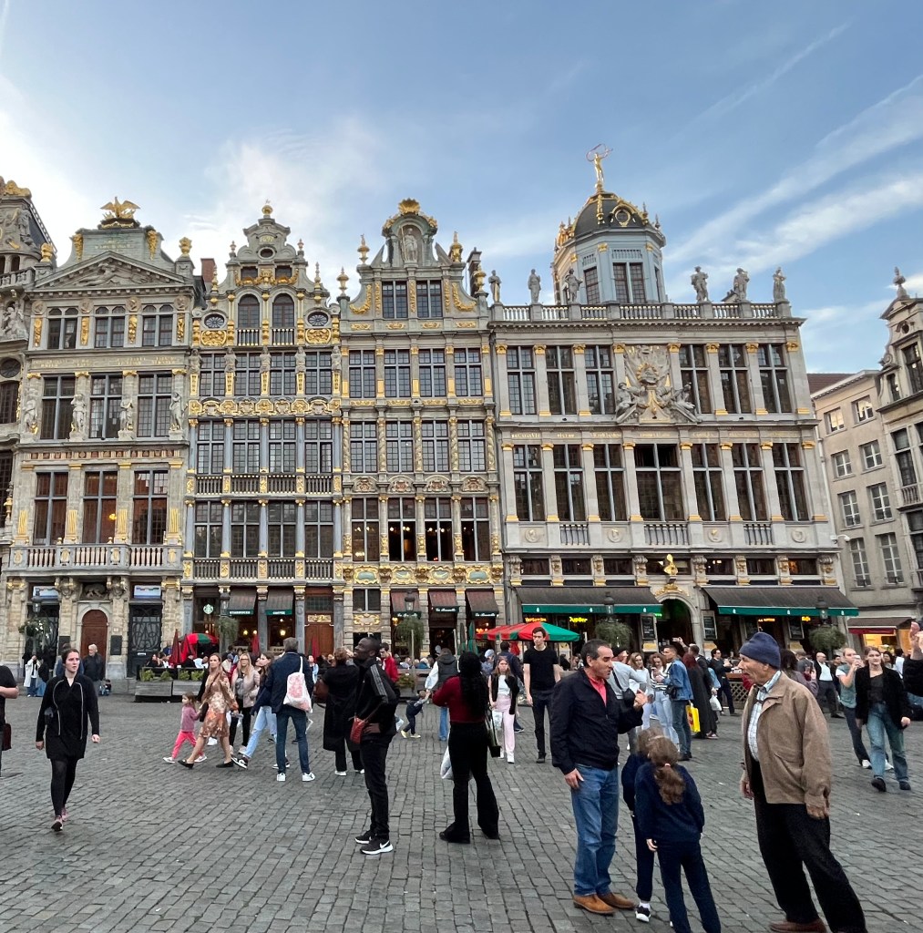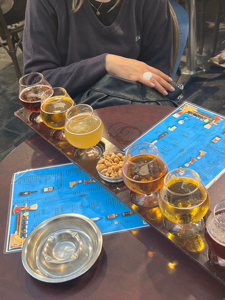 Heading home led us back through La Grand Place with evening lighting. There was a cafe where people were having flights of beer. Carolyn wished that Bernadette was still with us to share it. I never drink beer.