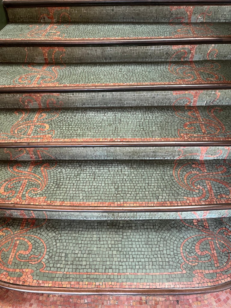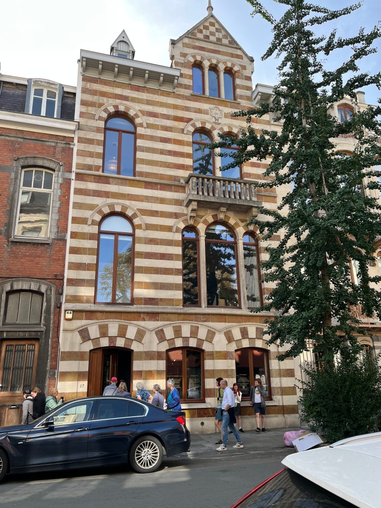 Belgium is known for Art Nouveau and this year there is a festival with openings of otherwise private places. Today we visited two Victor Horta sights. A house he built for someone else – Hotel van Eetvelde – and his own home and studio – Musee Horta Museum. The “Hotel” was built for the wealthy son of a chemist and industrialist. Victor said of his client, “Armand Solvay complains to anyone who will listen of the extraordinary cost of his house. Basically, its a luxury he can afford at my expense.” We were only allowed photos inside the van Eetvelde.
