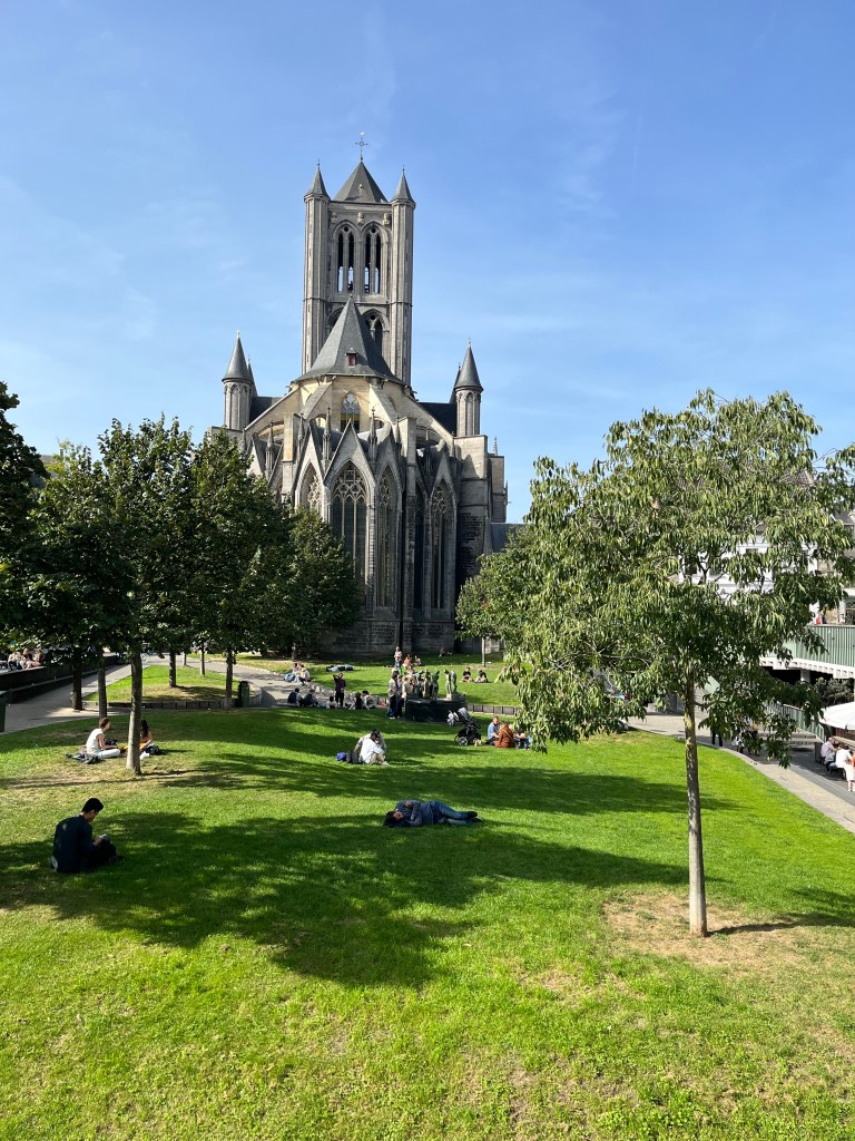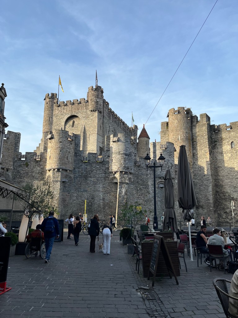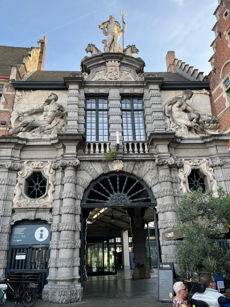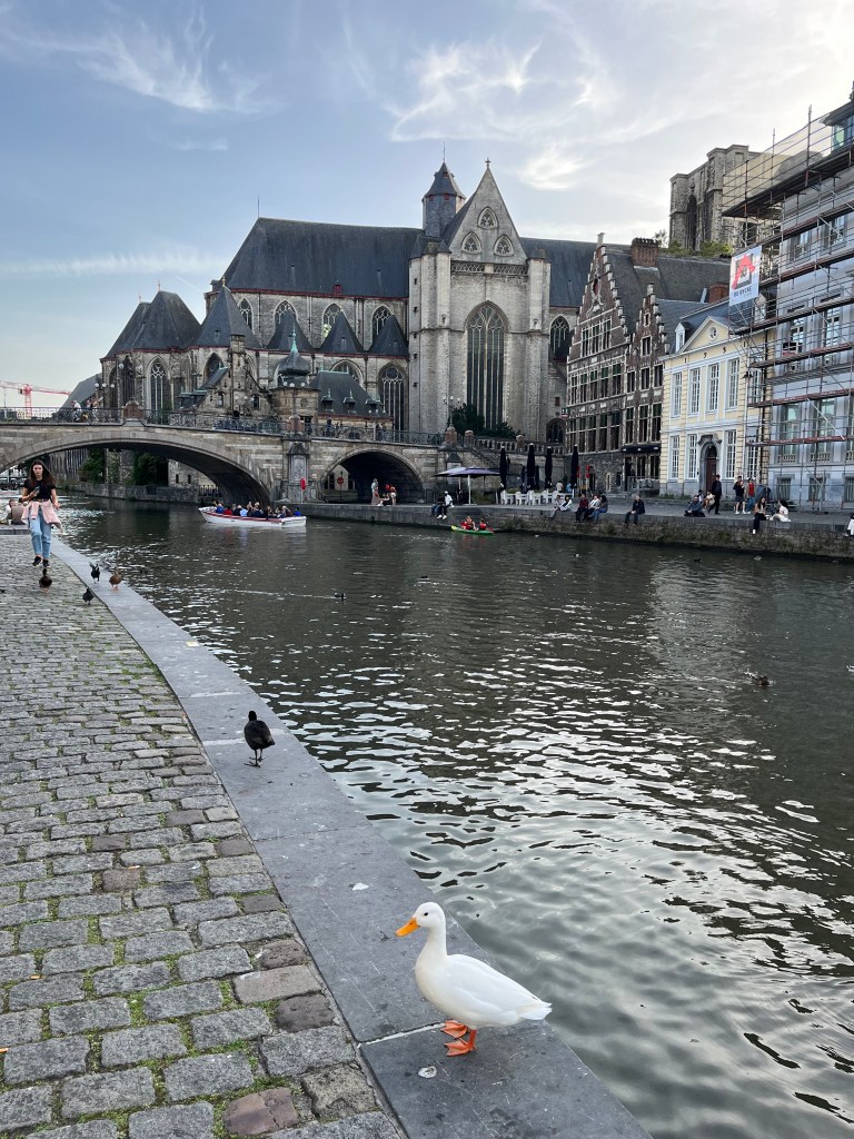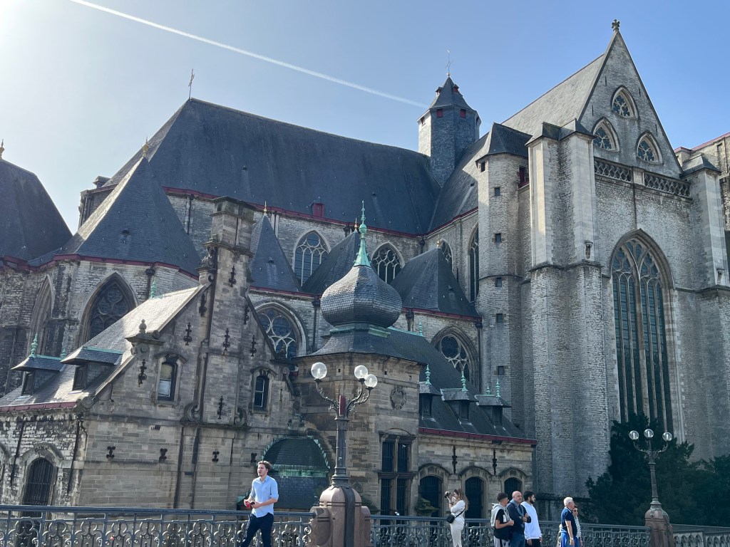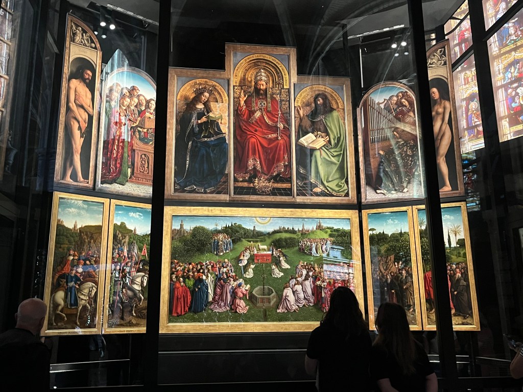 Ghent is a beautiful town. A large draw is St. Bavo’s cathedral which has the Jan and Hubert van Eyck Adoration of the Mystic Lamb alterpiece. Twelve canvases that composed the first masterpiece done in oil. The 7 canvases on top are undergoing restoration so copies are in their place. But, the lower 5 have already been restored and are brilliant.