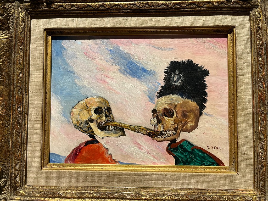 In the same complex of museums is the Fin-de-Siecle which – among others- had extensive work by James Ensor who was new to me. I enjoyed it very much. Here is a glimpse of the variety of his work.