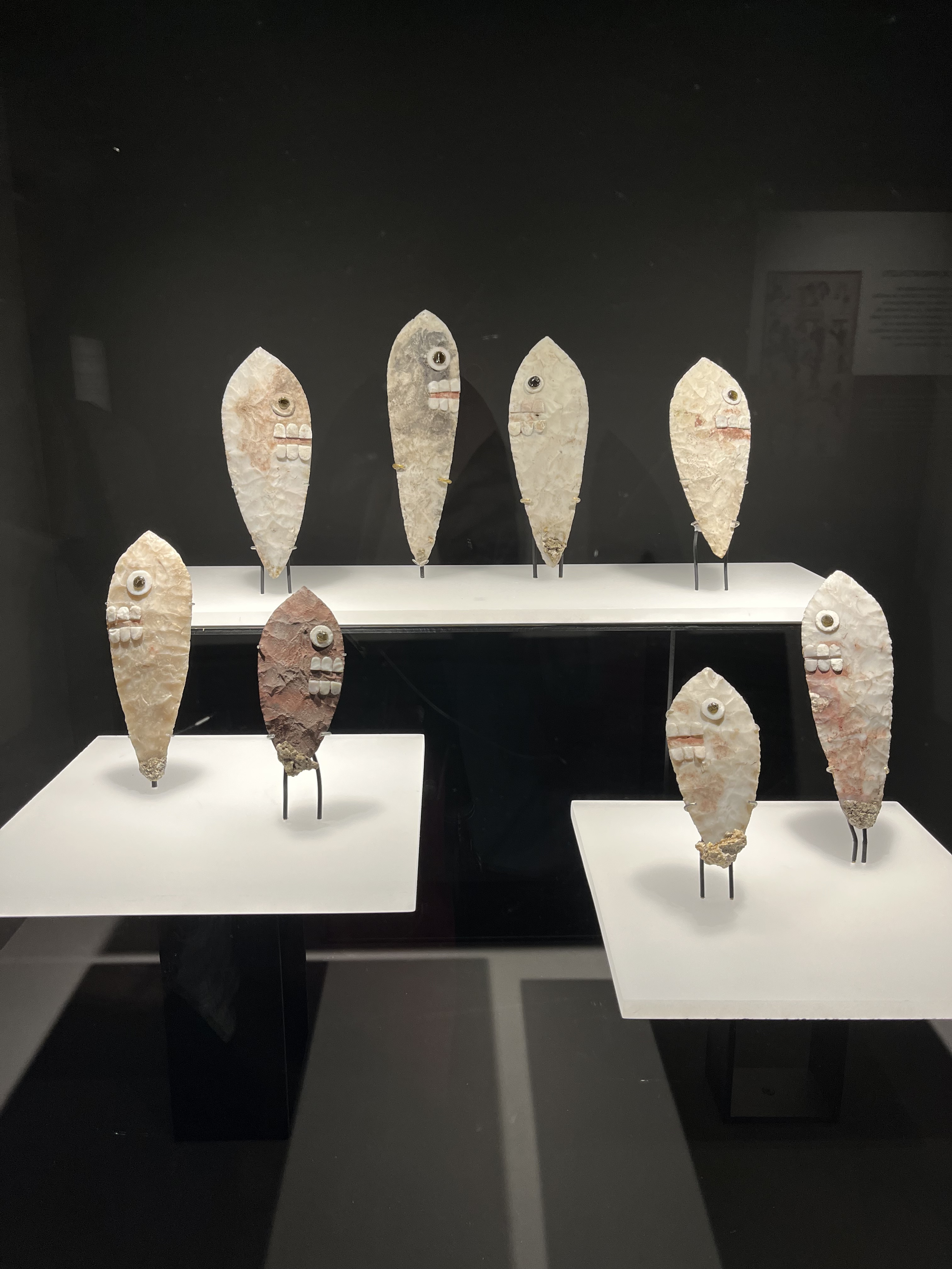 We are somewhat less than joyous and turn our backs on the courteous but adamantine guardians of the ticket booth and consult our itinerary spreadsheets for alternative activities. Templo Mayor, here we come; it’s right around the corner under the south wall of the National Cathedral: the size of a large city block with half a pyramid and a variety of supporting and adjacent structures reconstructed with chunks of black lava stones jumbled together with concrete. Aztec and the center of the Mexica Empire, built around 1325, and interesting to see but not as interesting as the seven-floor museum within its confines.