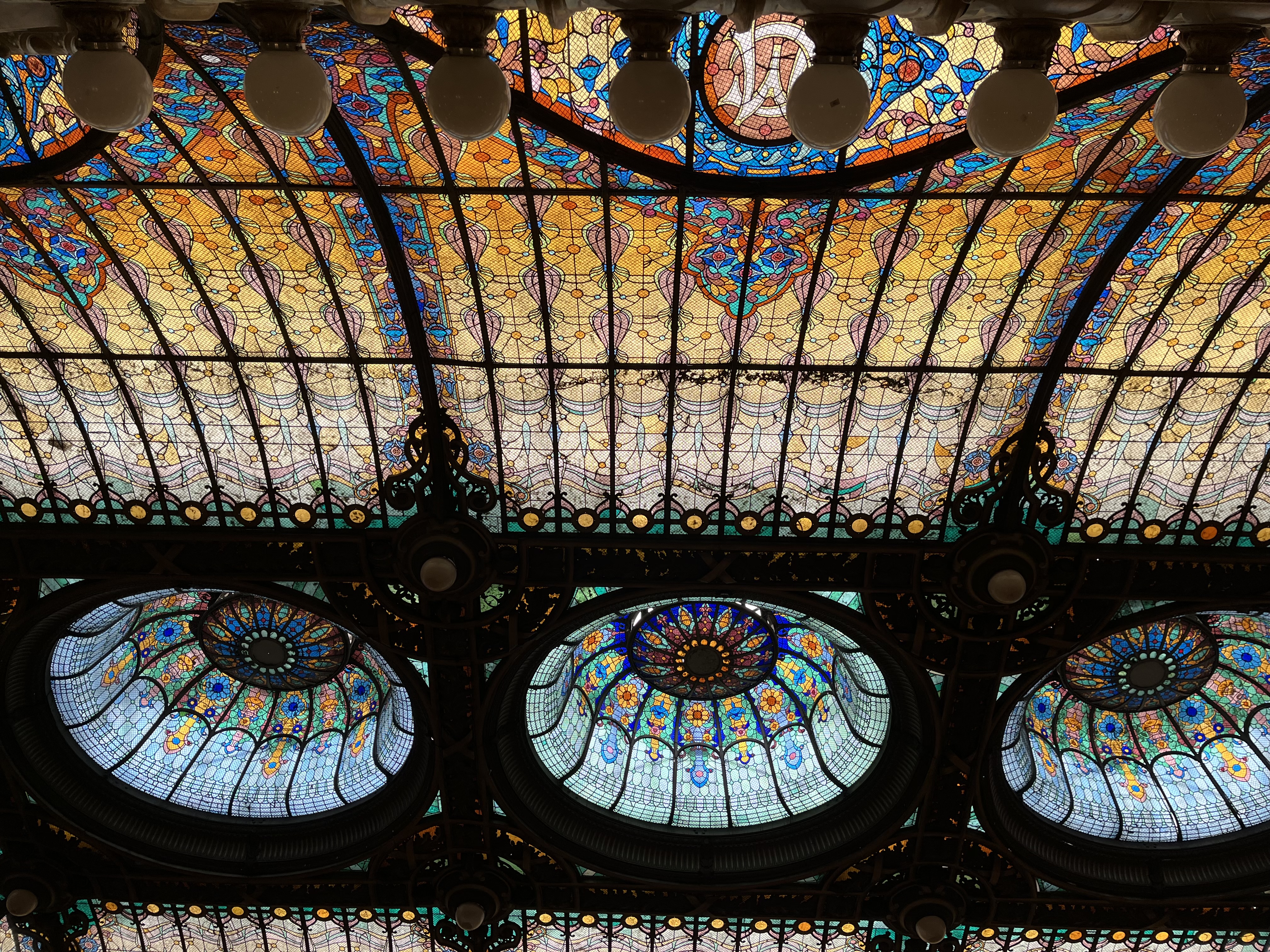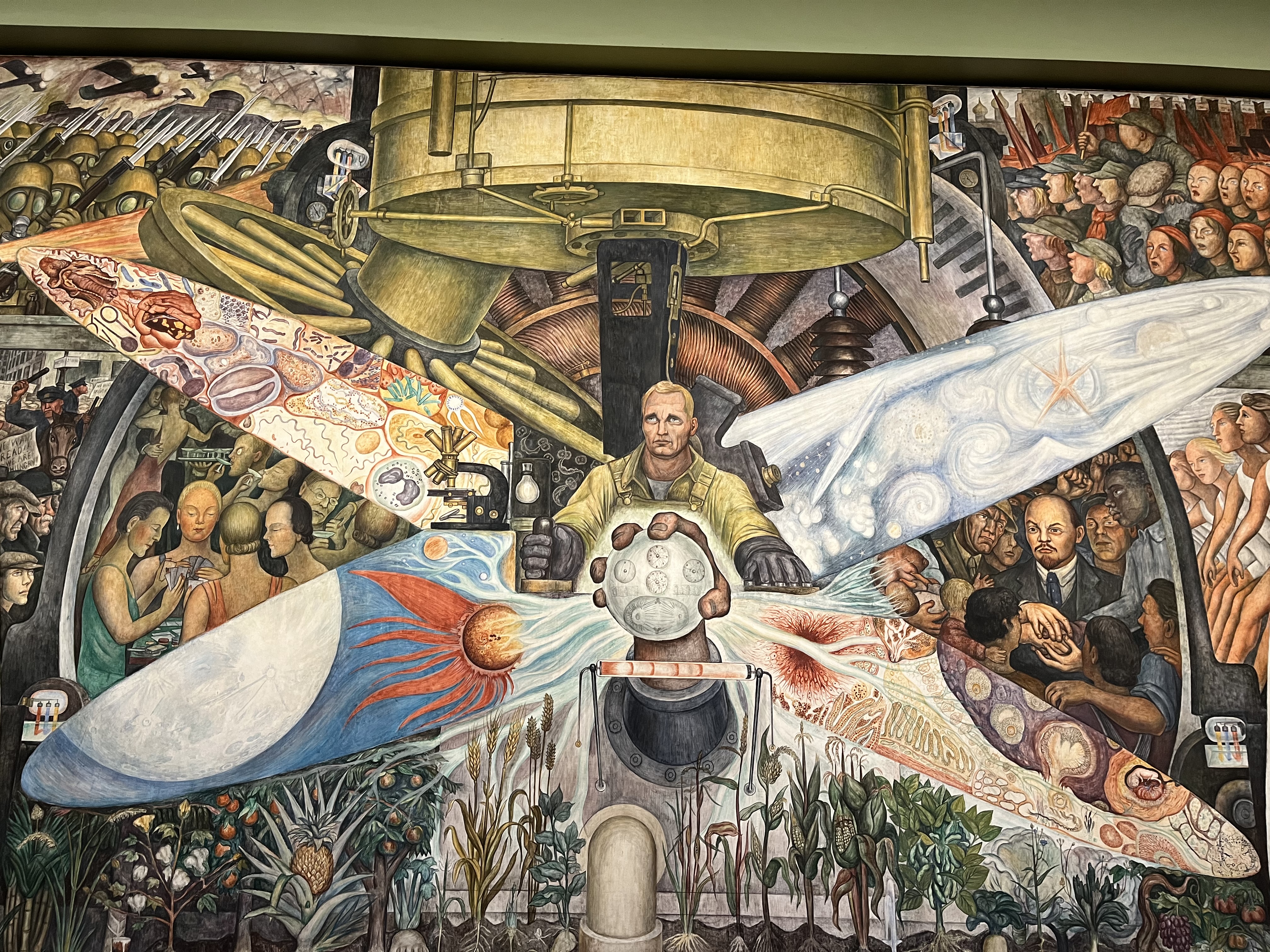 Yadda yadda, yadda. We get in for free ‘cause we’re seniors. Rivera’s Carnaval de la Vida Mexicana, his Revolution Rusa o Tercera Internacional, and other murals by Orozco blow us away. Cynthia can’t wait to see the Tiffany glass curtain in the performance space but, of course, we are told that despite what the website says, it is shown only for 1/2-hour from 1:30 to 2:00 and not on weekends.