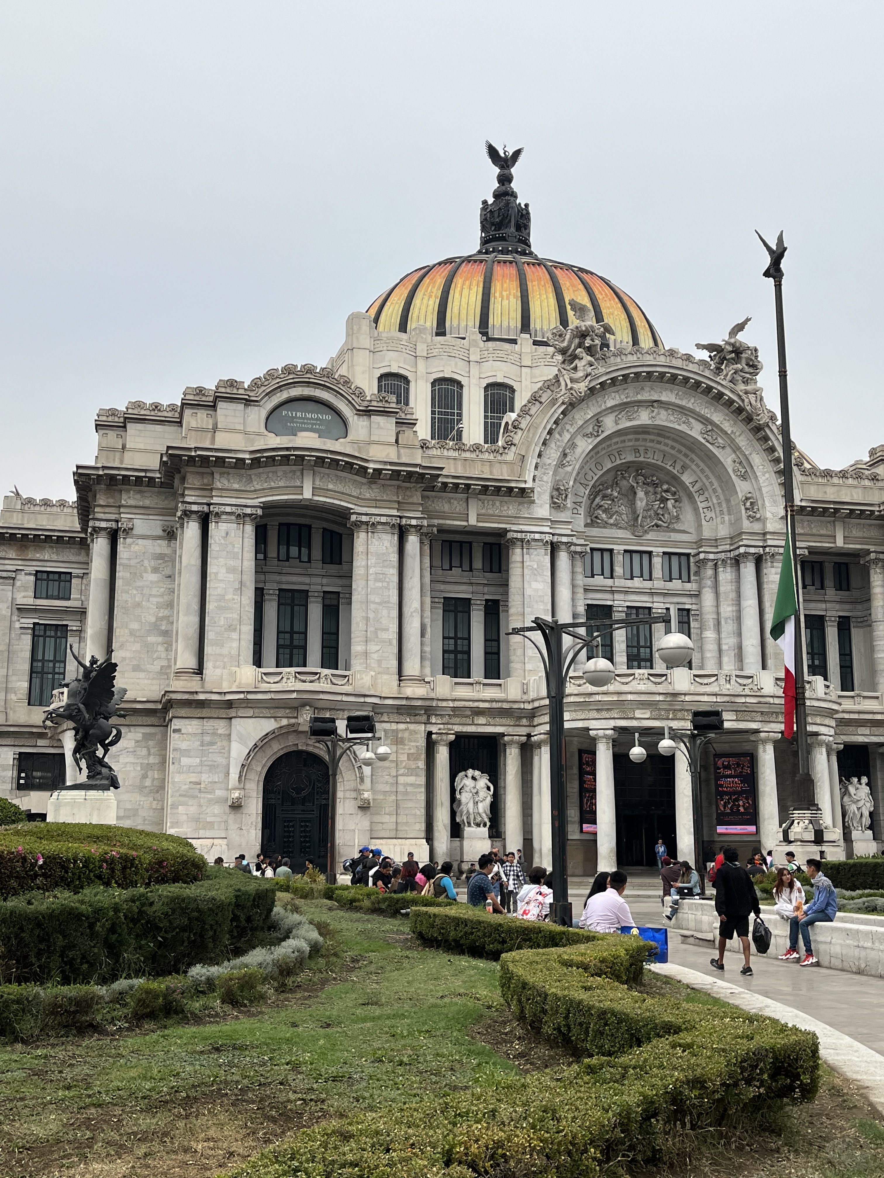We are forced by guards to retrace our path into the site outside the museum and make our way along Avenida Madero to the Casa de la Azulejos — a huge edifice coated in beautiful blue and white tiles, where we hope to get lunch and are seated but leave our table after no one gives us a menu after 20 minutes. Propelled by hunger, we walk to the Palacio de Bellas Artes to get the English-language tour and see Rivera and Tamayo murals. At the ticket booth we are told the English-language tour listed on the website is not available today. When is it? Well, you have to book it on the website. But, we say, there’s no way to book on the website. That’s because you have to reserve the tour with a personal guide, we are told. So may we arrange a personal tour for another day with you, we ask. No, we are told we may only book such tours on the website.