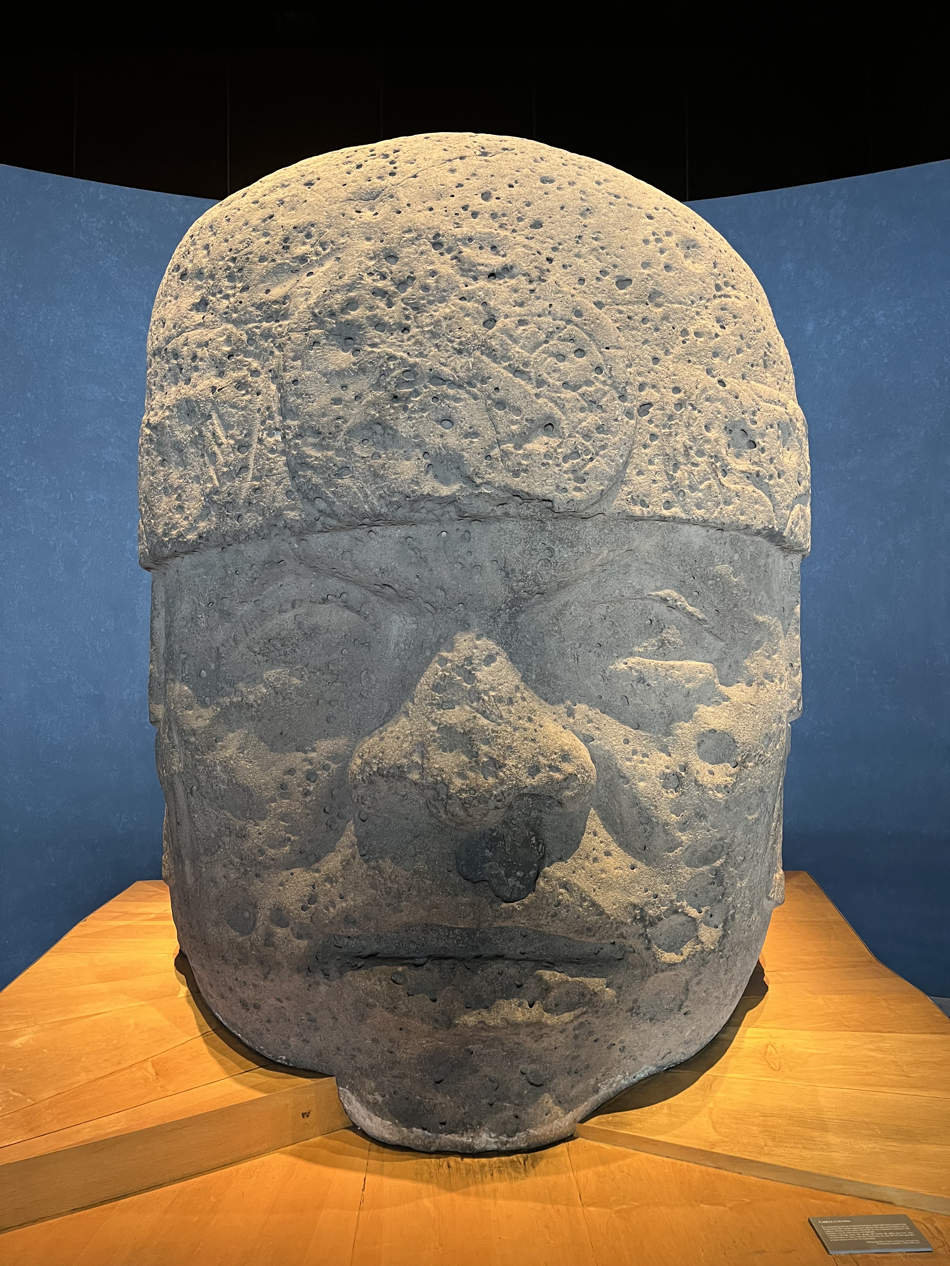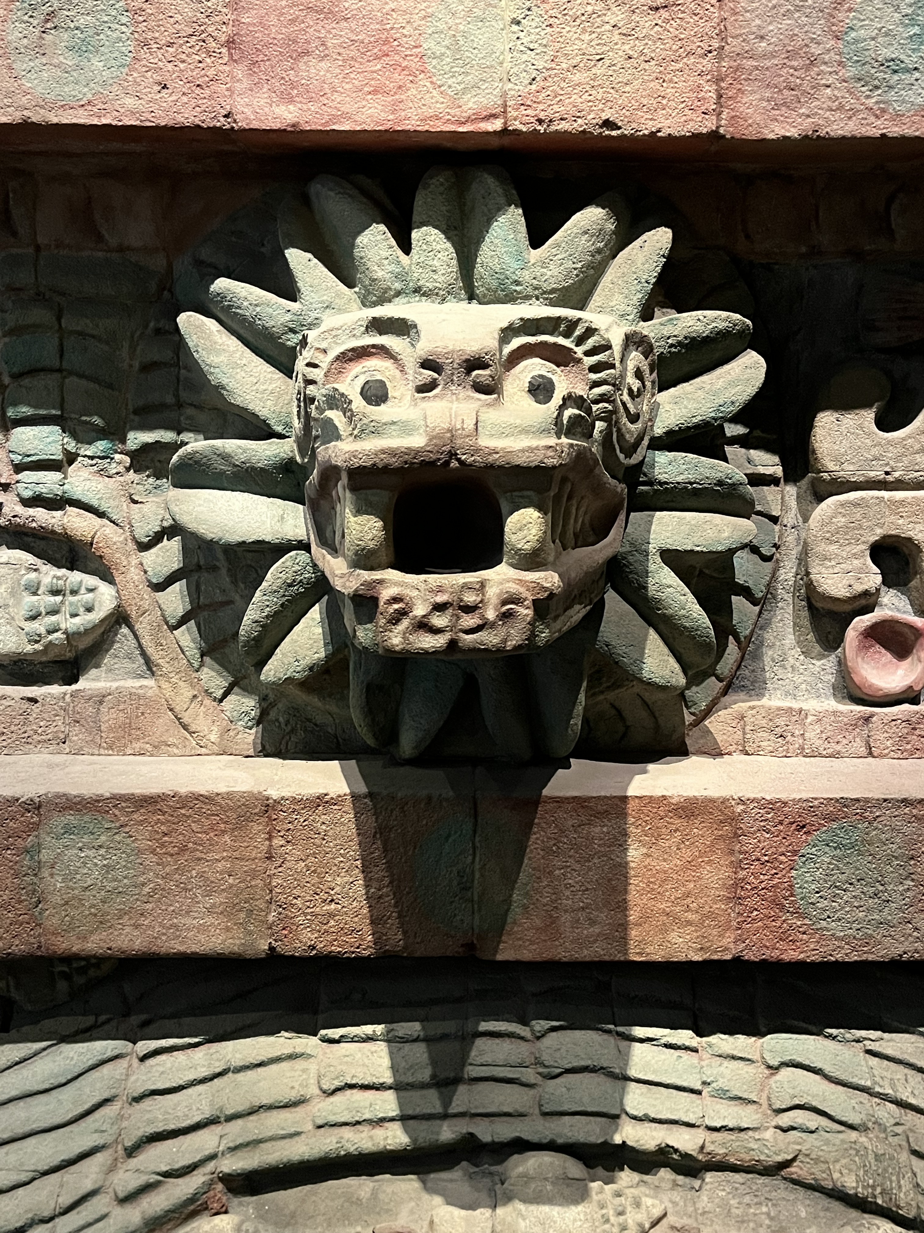 We manage to get our entradas in a single line — but must show them subsequently to two more people at various places to get into the museum, keeping the Mexico City process at least somewhat intacto. We get cafe, pane, jugo, etcetera, wolf it and go to the first section, which also represents the oldest artifacts and explanations.