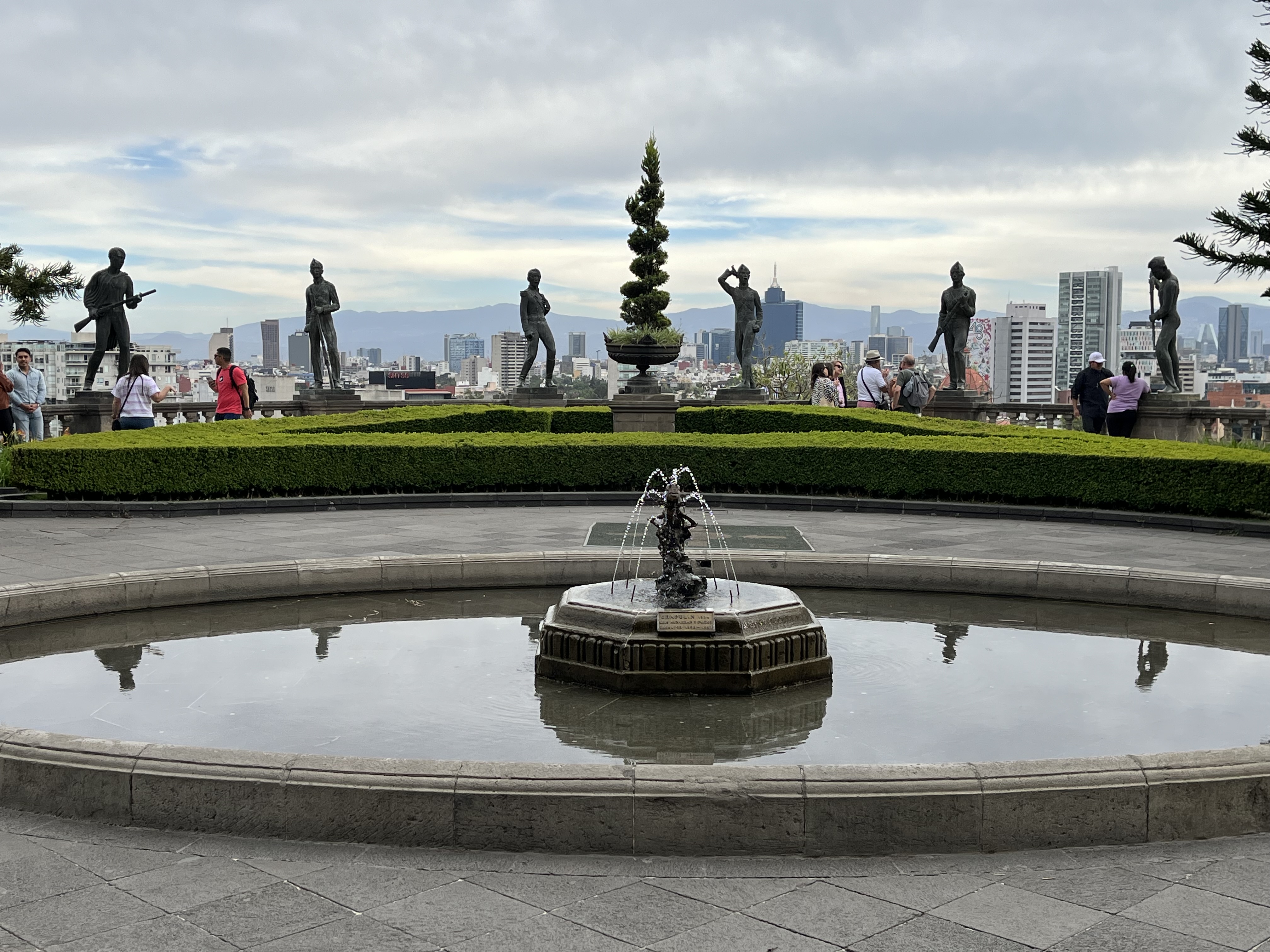 We exit the museum and walk through parts of downtown’s Chapultepec park. We wanted to see the Chapultapec castle (Nahuatl for “on the hill of the grasshopper”), but were told it was closed until we get to its entrance and the guards simply gesture toward the long uphill road to the entrance and say, “libre.” Debra sits with some foot issues and my better planner and I walk up the hill and see most of the castle in the half hour left before it closes: the monument to the six hero sons (died by diving off the Chapultepec Castle with the Mexican flag rather than yield to American troops in the Mexican-American War of 1847). All kinds of history here in this castle: built in 1785 for the Viceroy of New Spain, later the official residence of Maximilian I, declared the official presidential residence in 1882 by Manuel Gonzalez but, finally, dissed as home by Lazaro Cardenas in 1939.