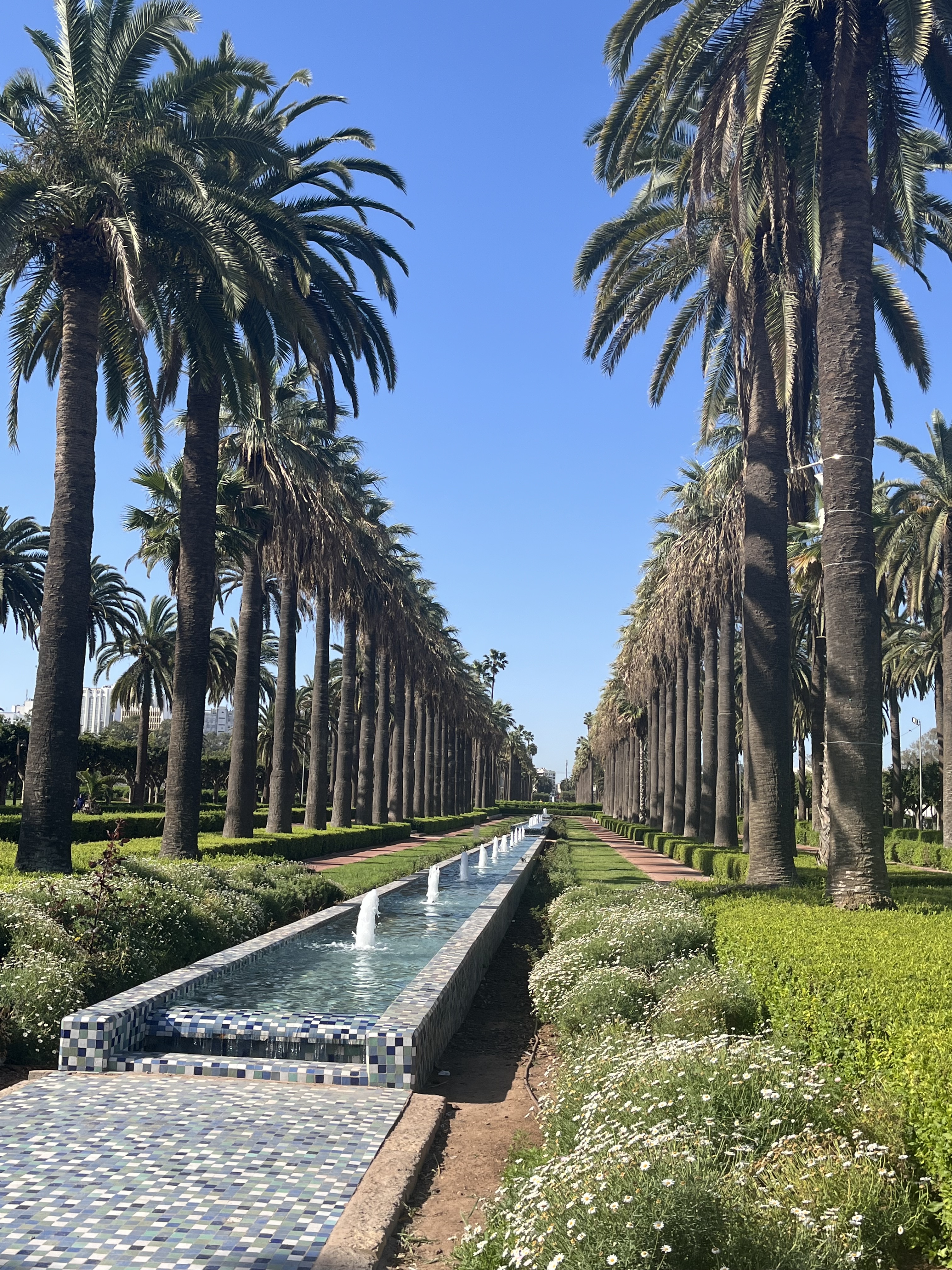 We acquire SIM cards at one kiosk and some Dirham at another, grab a “Big” cab to our hotel and zip along immaculately clean highways with perfectly trimmed trees, chatting in French with our driver who deposits us at the door of Le Doge where our room, at 7:45 a.m. is faaaaar from ready. But Mohammed, the young and nicely snarky receptionist says he’ll guard the bags while we walk around the city, which, because it’s day 1 after Ramadan and because it’s 7:45 in the morning is closed. We venture nonetheless, completely fooled by Google maps for the first 15 minutes but finally get our bearings and walk through a park by the L’Eglise de Sacre Coeur.