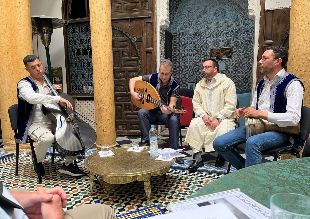 After lunch we waddle back to the CCCL for a performance of four pieces, some sung, of Andalusian music done in the style of a fellow named Ziryab, whose music broke with his mentor’s musical sensibility and Arabian music’s traditions in about 830 AD. Arabian music then, apparently, had such strong religious roots that deviation from tradition was near heresy to the point where Ziryab split Baghdad (I think, not sure …) for Cordoba, Spain, where he developed a non-polyphonic oeuvre with long, constantly embellished pieces. Think “Elvis is in the House.”