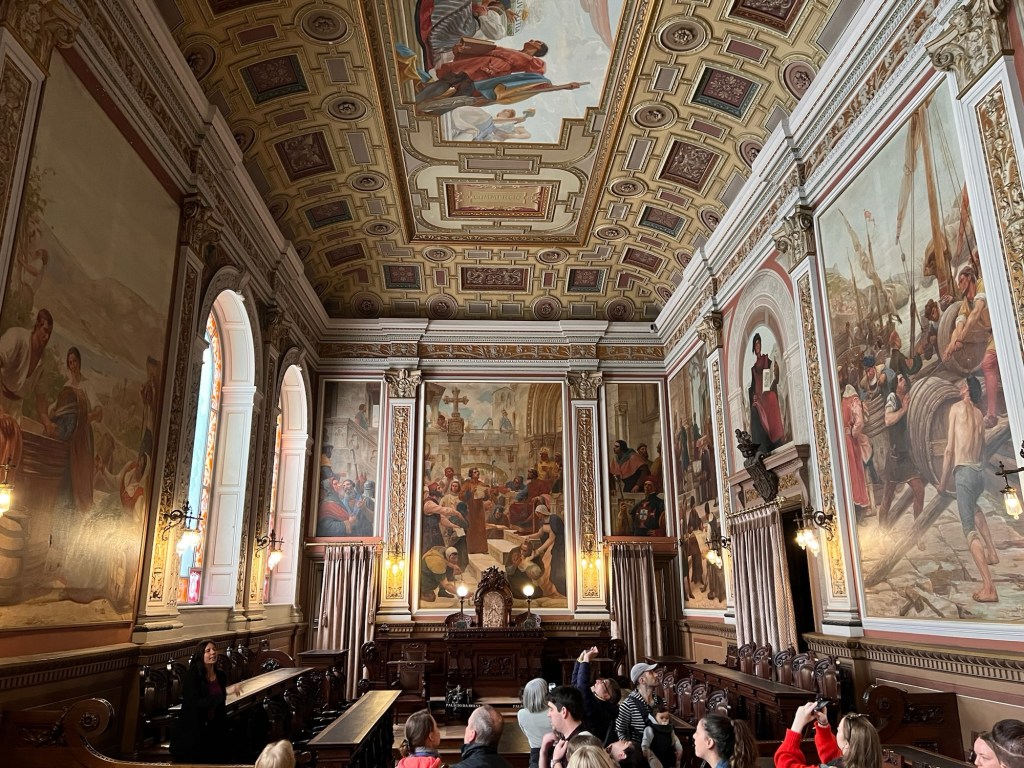 The tour is worth the wait: Opulent rooms in this building whose foundations were laid in 1834 when Oporto was a shipping power globally. Gifts given to the directors and their city abound, including entire rooms whose materials were donated by middle eastern nations and oriental despots. One gift: a bottle of 1834 port to commemorate the cornerstone. It is the oldest bottle of port in the world, we are told.