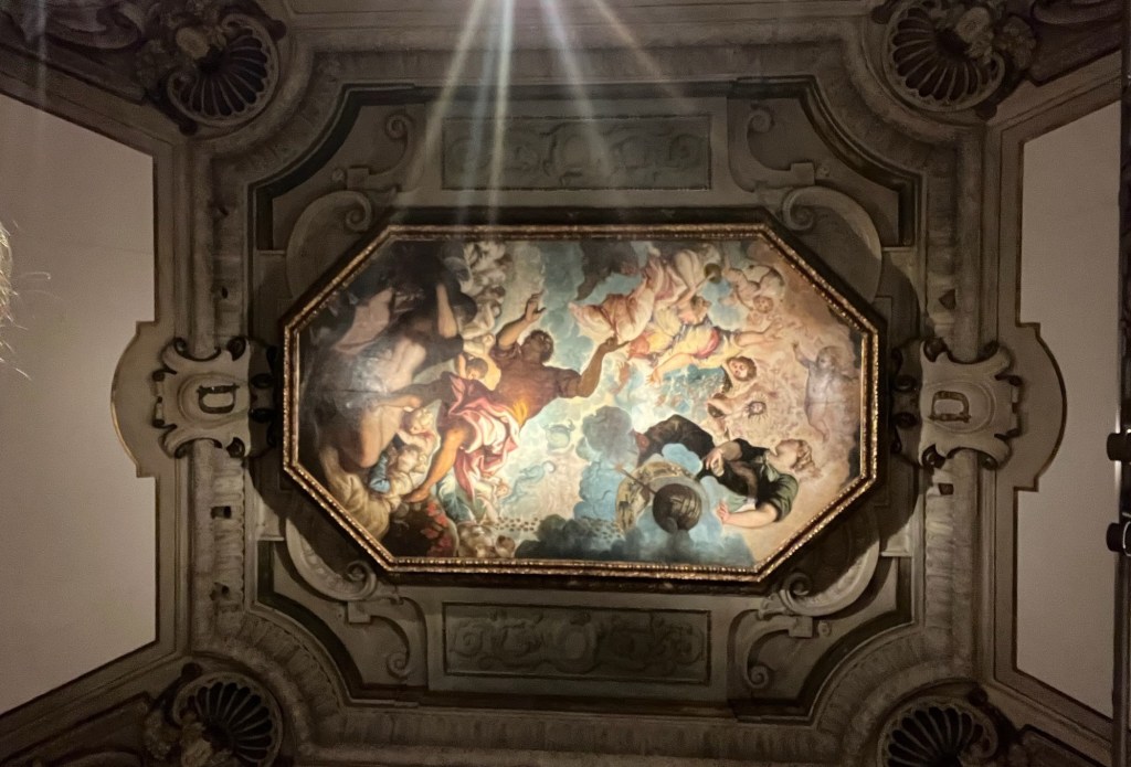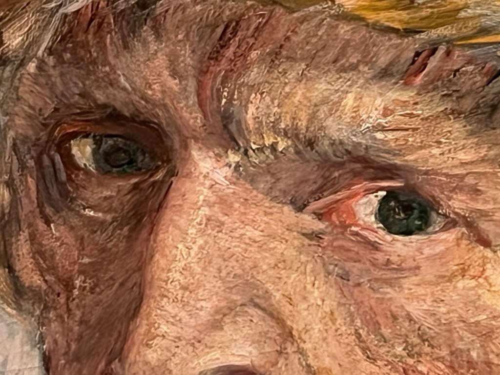 Before we get to Diego’s Court, Miguel shows us some highlights from several time periods: Babylonian ceramics through Renaissance chiaroscuro (Tintoretto … and a woman (!!!), Artemisia Gentileschi), through post-impressionism (Van Gogh self-portrait) to 1930’s carved wood ceremonial bowl by the Yoruban Olowe of Ise.