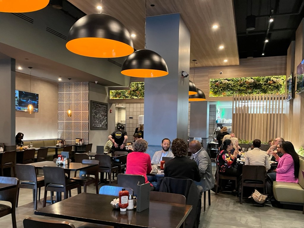 The Hudson Cafe on Woodward Avenue, just three blocks from our hotel, is a Detroit landmark, like Scholls Cafeteria was in Washington, DC. Its menu is the size of a small movie poster and covers bagels to benedicts. Cynthia orders poached eggs that arrive swimming in water and taste like … water. David’s over-easies were perfect as was his coffee. We finish and quickly find the #4 bus north on Woodward, which will take us to the Motown Museum.
