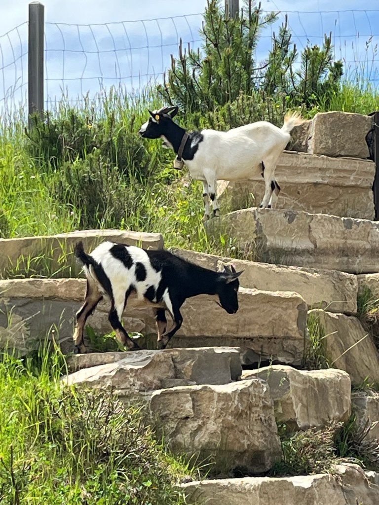 We take trail # 9 and walk along a paved path with the jagged peaks to our left, beyond a broad verdant valley so green and perfectly manicured that it looks unreal: a set constructed for such movies as the Sound of Music. Beautiful, serene, majestic all at once. Look at the photos!
