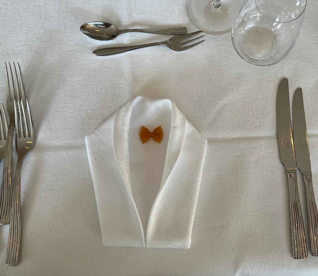 The place settings for dinner are charming.