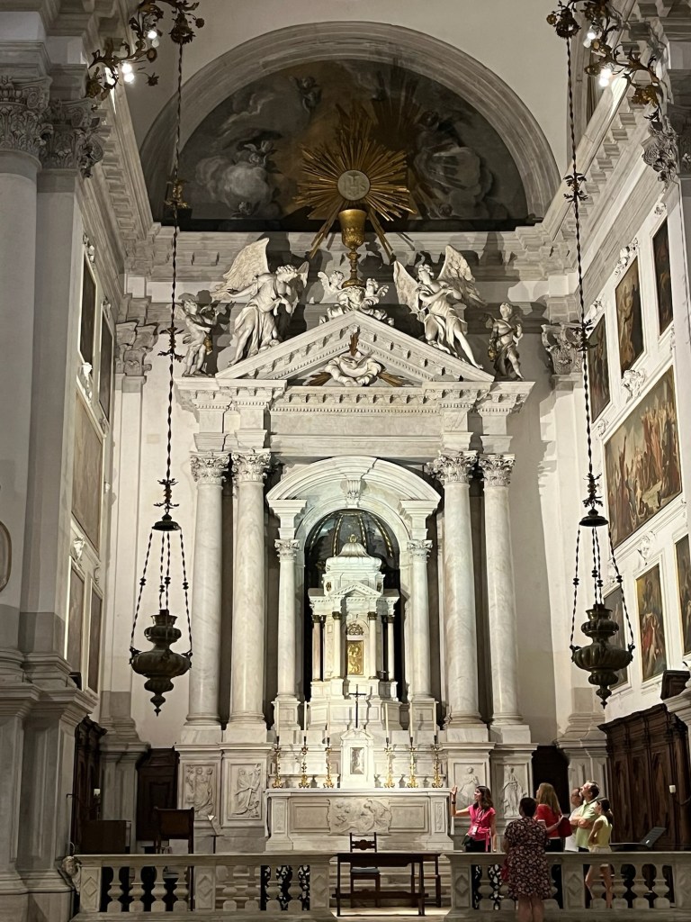 We enter the St. Stae church at our “vapo-stop” that, we learn later, is almost never open. Simple Baroque but not heavily decorated and empty. Lovely, hello Venice.