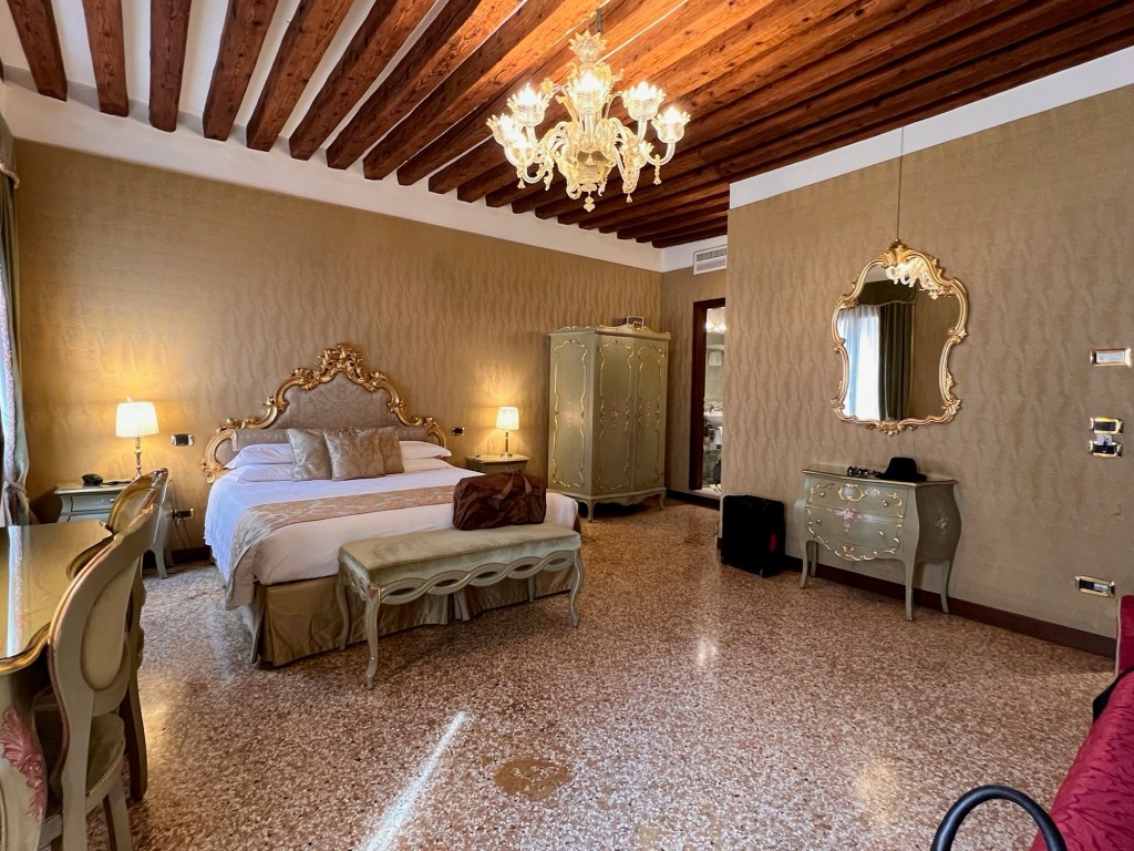 Done. But … of course … there are dozens of vaporetto stops — floating covered platforms where you cue for a 25-foot water bus — and it takes us a while to learn how to read the myriad maps and signs … but we finally agree — and fervently hope — that Dock E, vaporetto #1 in the Lido direction to stop St. Stae in the Santa Croce sestiere (think arrondisement) will get us 50 meters from the “rear” entrance to our hotel Al Ponte Mocenigo.