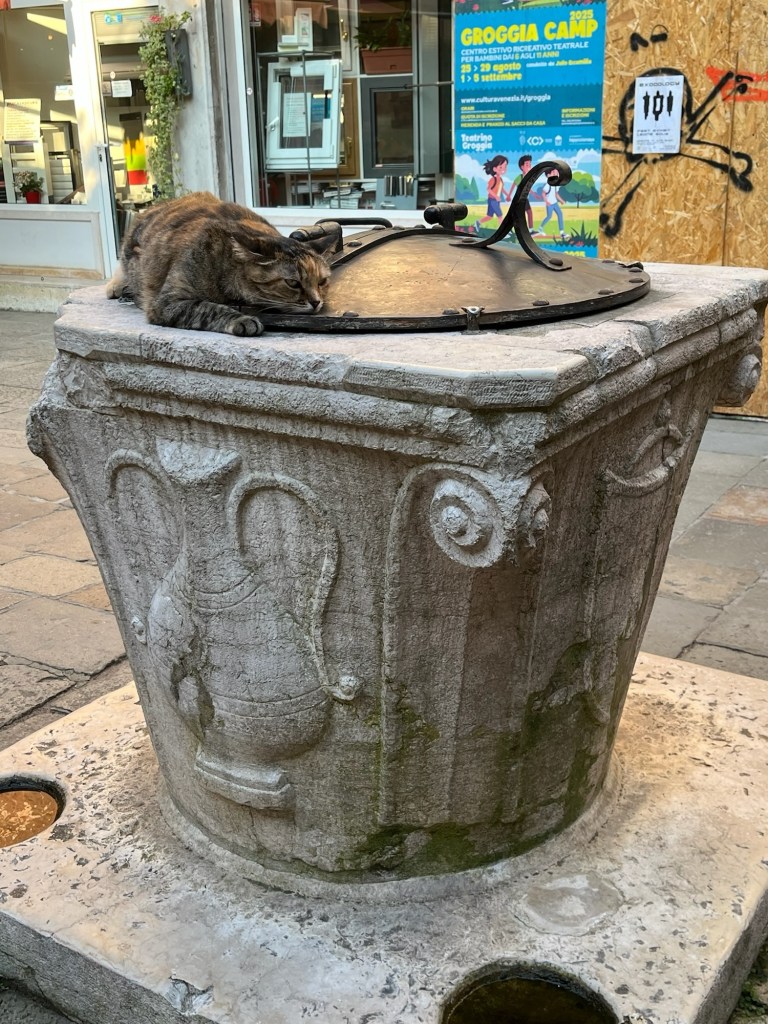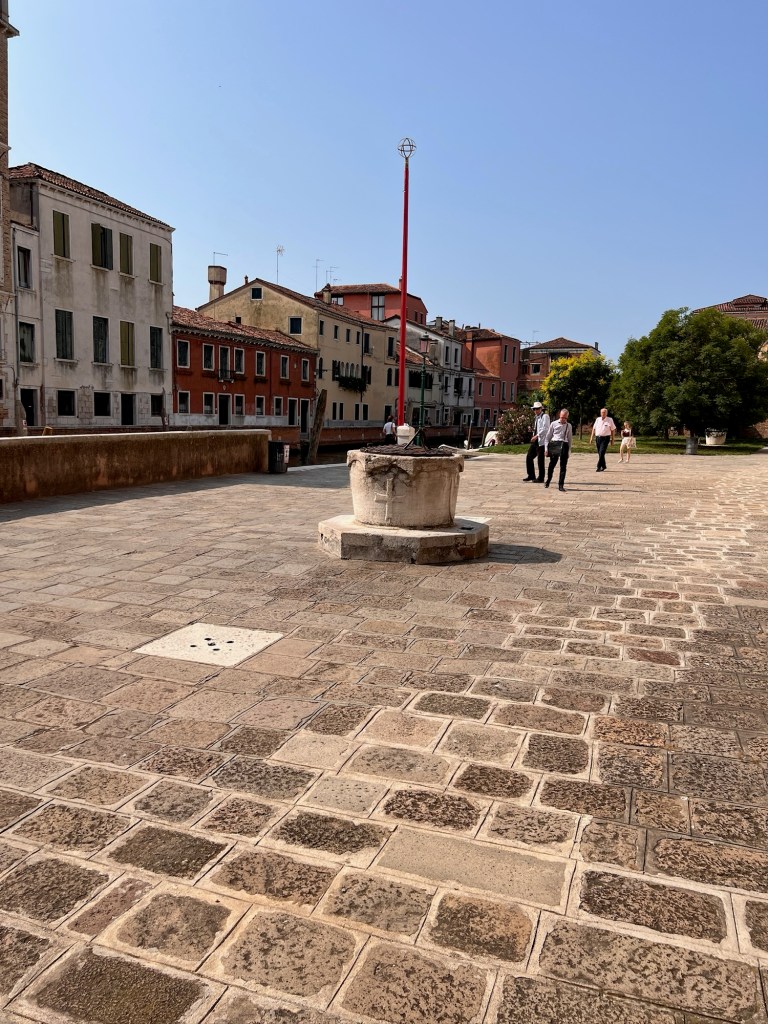 So is having drinkable fresh water. So, as Michael walks us through parts of the city, he shows us some of the 6,046 water cisterns — maybe 150 were public — in the casa courtyards and campos (small piazzas) throughout the city, explaining how the Venetians developed and constructed catch basins for rain and imported water that would purify and hold it beneath the cisterns.