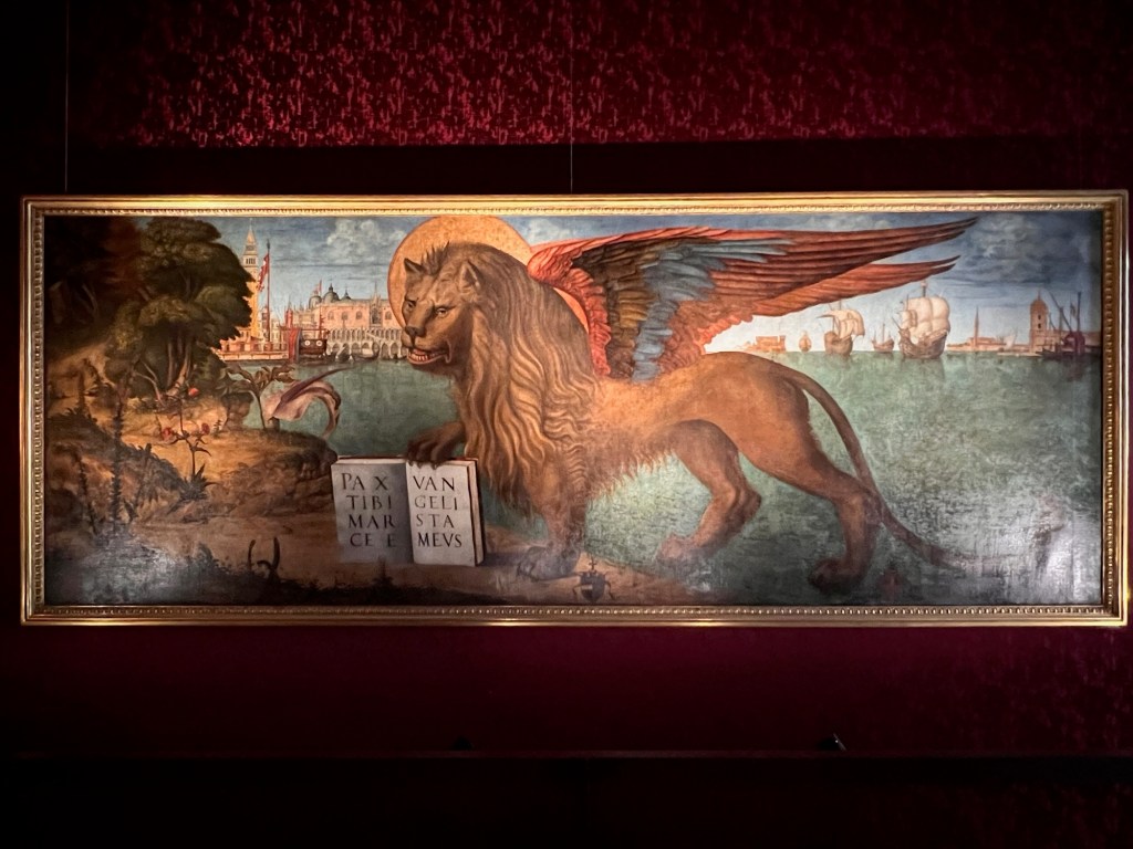 Donatella shows us the “mail boxes” where complaints could be submitted. They had to be signed by the writer AND two witnesses). These administrative offices have walls and ceilings painted by numerous artists from multiple centuries, frequently Girolamo Bassano, Veronese, and Tintoretto and his workshop.