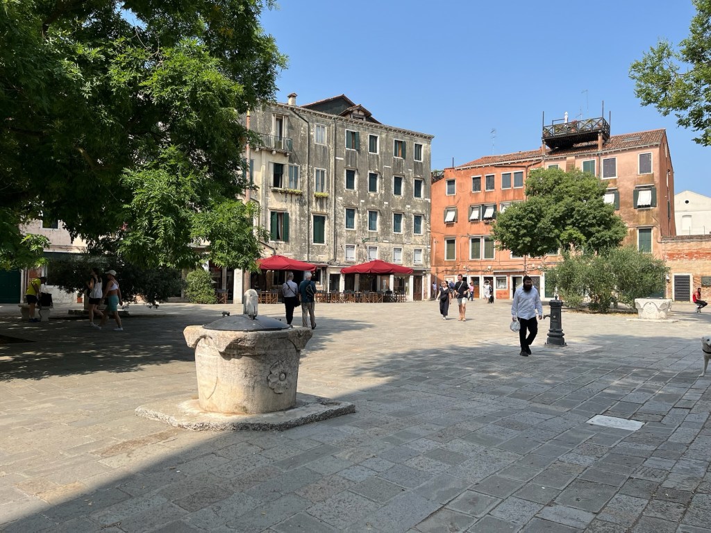 We walk by the monument to Paolo Sarpi who — loooong story short — rescued Venice in 1607 from a Papal Interdict — think excommunication that forbade trade. We walk into an enclave run by the Lucchese family — weavers, not mafioso — who established a “school”: a civic institution NOT directly controlled by the Catholic Church, which gave the Lucchese community some independence. (This strategy of establishing “schools” would be used over time by other immigrant groups in Venice.)