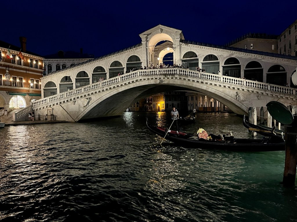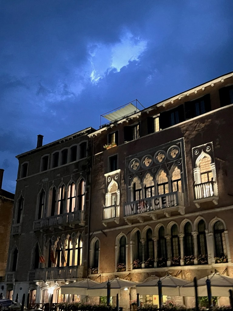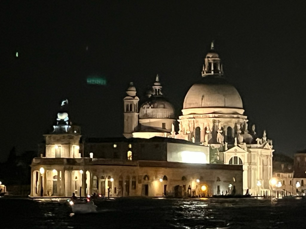 After dinner we took a boat to and past San Marco. Then caught a returning boat all the way to our hotel. Seeing Venice by night is delightful. Our return trip was accented by lightning. Rain started just as we reached our stop. We got inside just in time for a downpour.